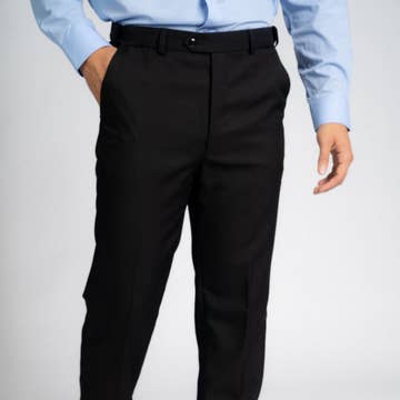 Pants - Rental Construction All rental construction pants include an adjustable waist feature (made with premium US-made components) to ensure a durable and reliable solution for the best in quality, made-for-rental tuxedo store. * Every man should own high-quality and classic tuxedo pants. Lucky for you, the Christophers are that pant! Made from a luxurious viscose blend (Super 150's to be exact), the Christopher tuxedo pants are not only comfortable but timeless. These plain front, solid pants have the classic tuxedo satin stripe going down the side of the leg; and are available in both modern and slim fit sizes making them a great option for any modern man. Color: Black Style: Plain Front Material: Luxury Viscose Blend (Super 150's) Pattern: Solid Formal Stripe: 1/8" Satin Stripe Designer: Cardi Fit & Sizes: Modern Fit (28 - 70) or Slim Fit (34 - 44) Condition: Brand new with original tags & packaging. Pants come unhemmed at the bottom so you can hem to your preferred length.
