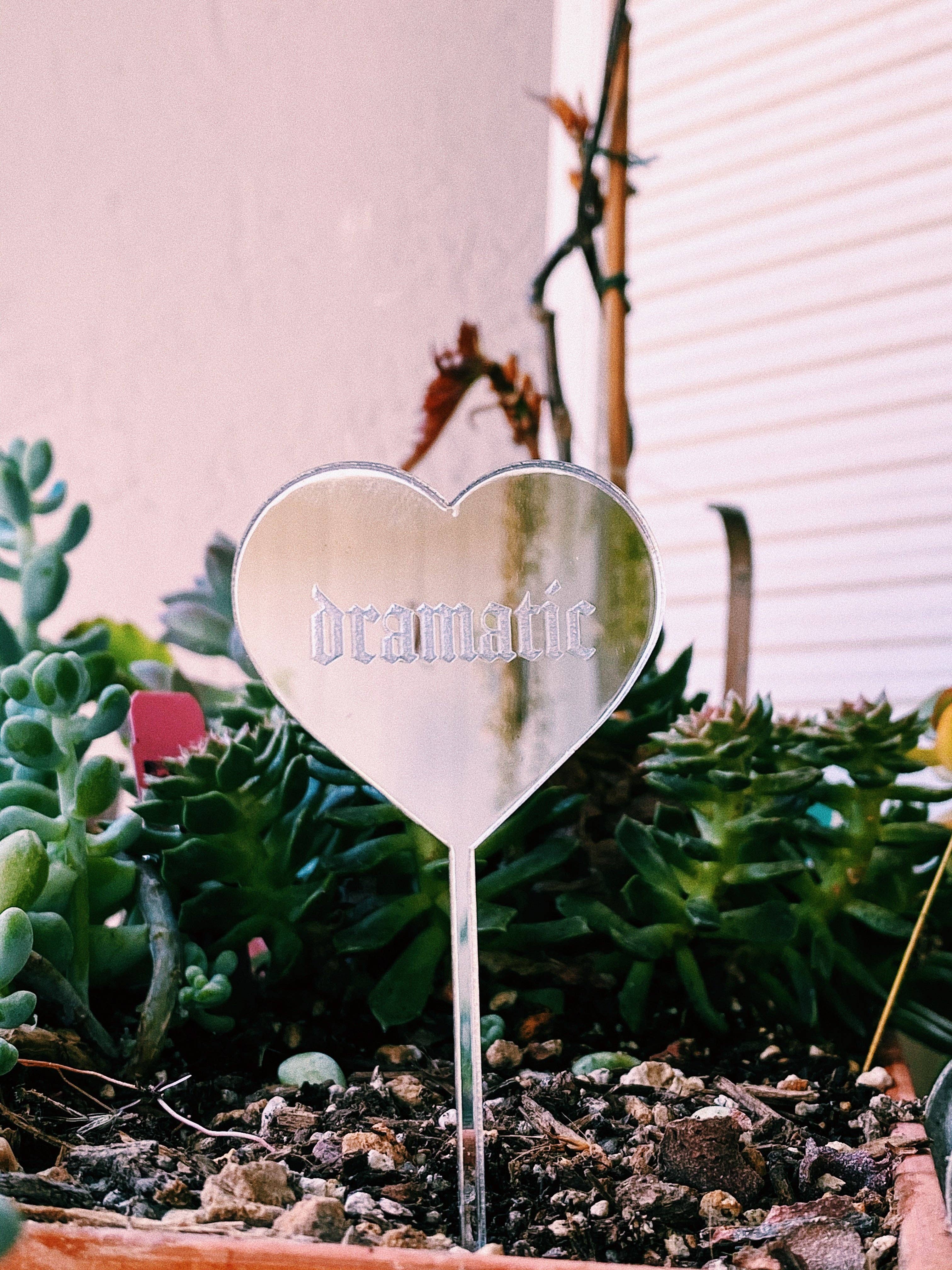 These plant stakes are designed and cut by me. mini is 5 inches long-perfect for succulents and smaller plants. Regular size is 10 inches long & is good for more full/larger plants. Made with mirrored acrylic, perfect statement piece for your favorite plant. Remove stakes when watering your plant with a sprayer to avoid water stains. Not necessary to remove stakes if you don’t use a sprayer/hose to water your plants. Can be cleaned with windex or any other glass cleaner. Mirrored acrylic is much stronger than glass but still will break under pressure - do not bend. Will most likely come with a protective sticker on the outside at the time of arrival, peel off this sticker to reveal the mirror before use!