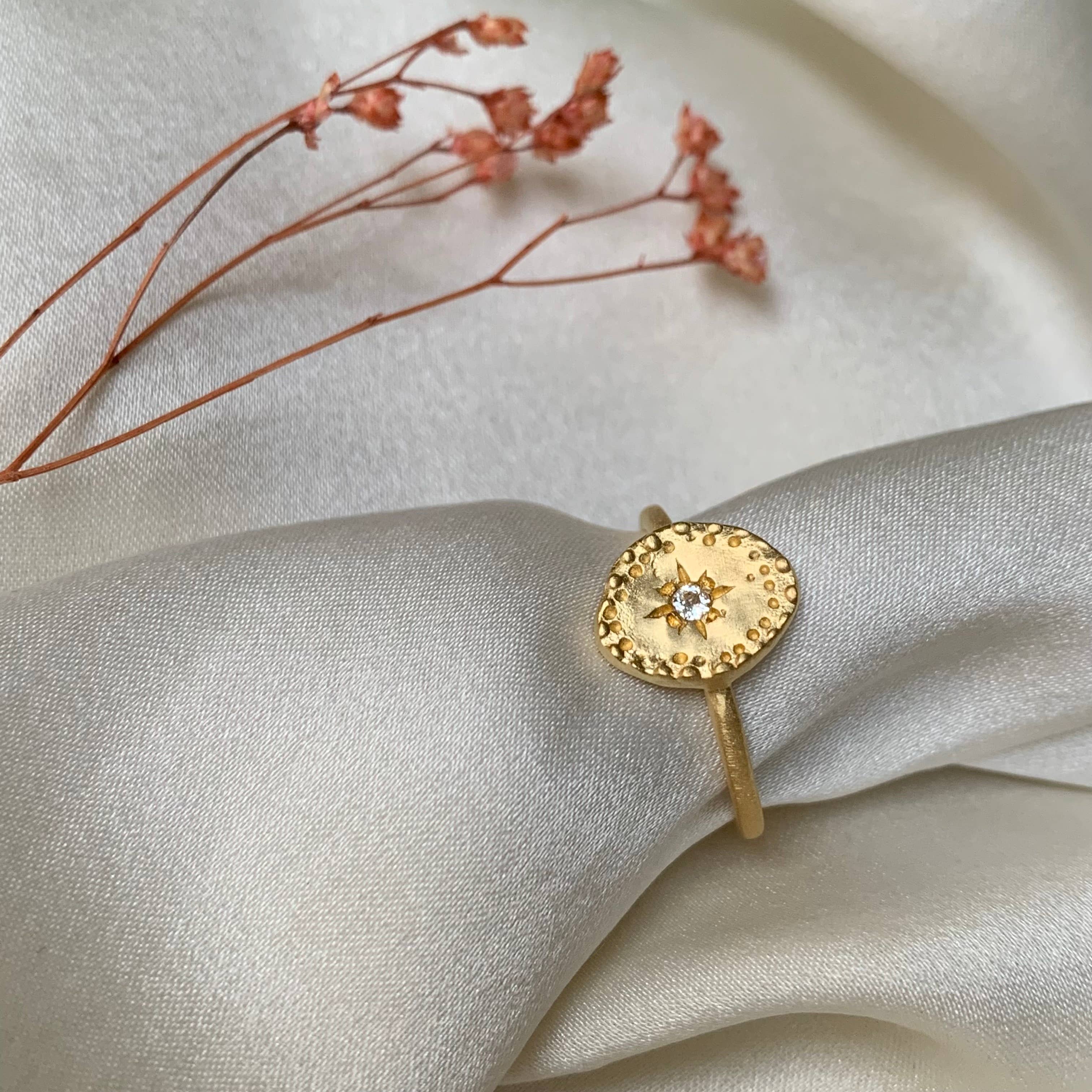 3 micron gold-plated ring set with white topaz Occasion: Christmas, Valentine's Day, Mother's Day, gifts, birthday, women's accessories, women's jewellery, summer jewellery