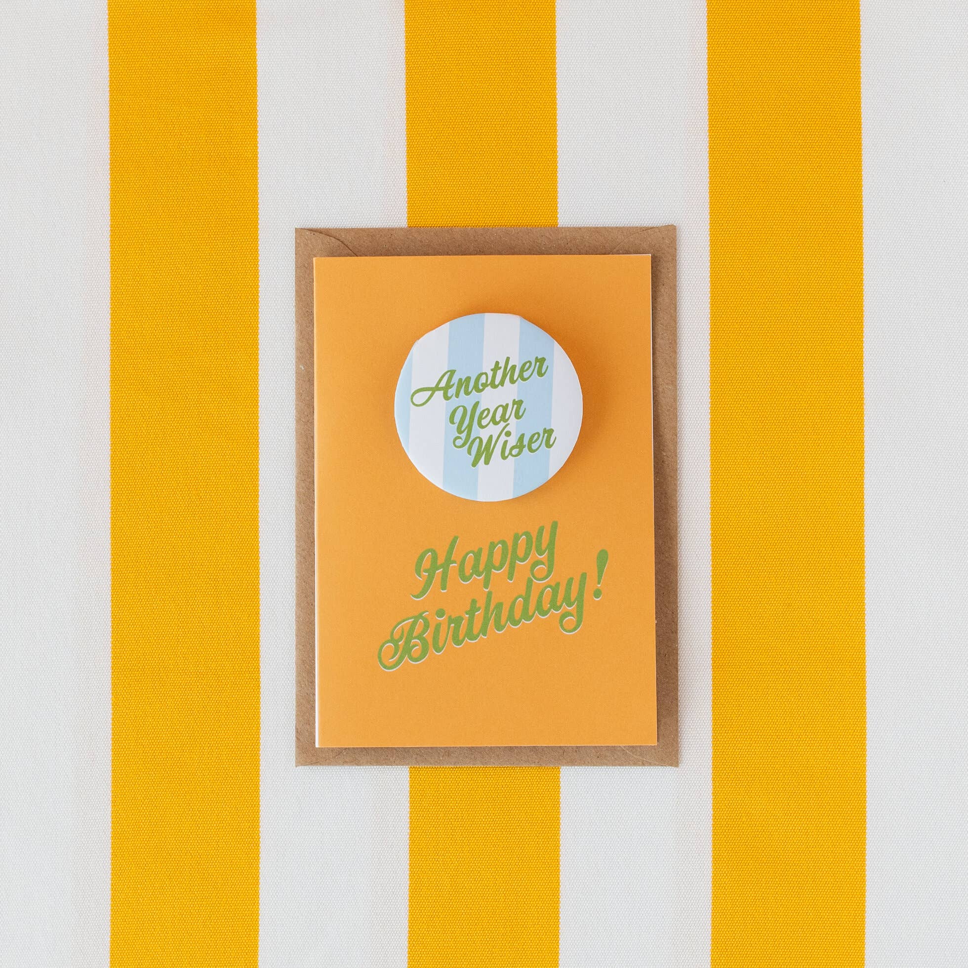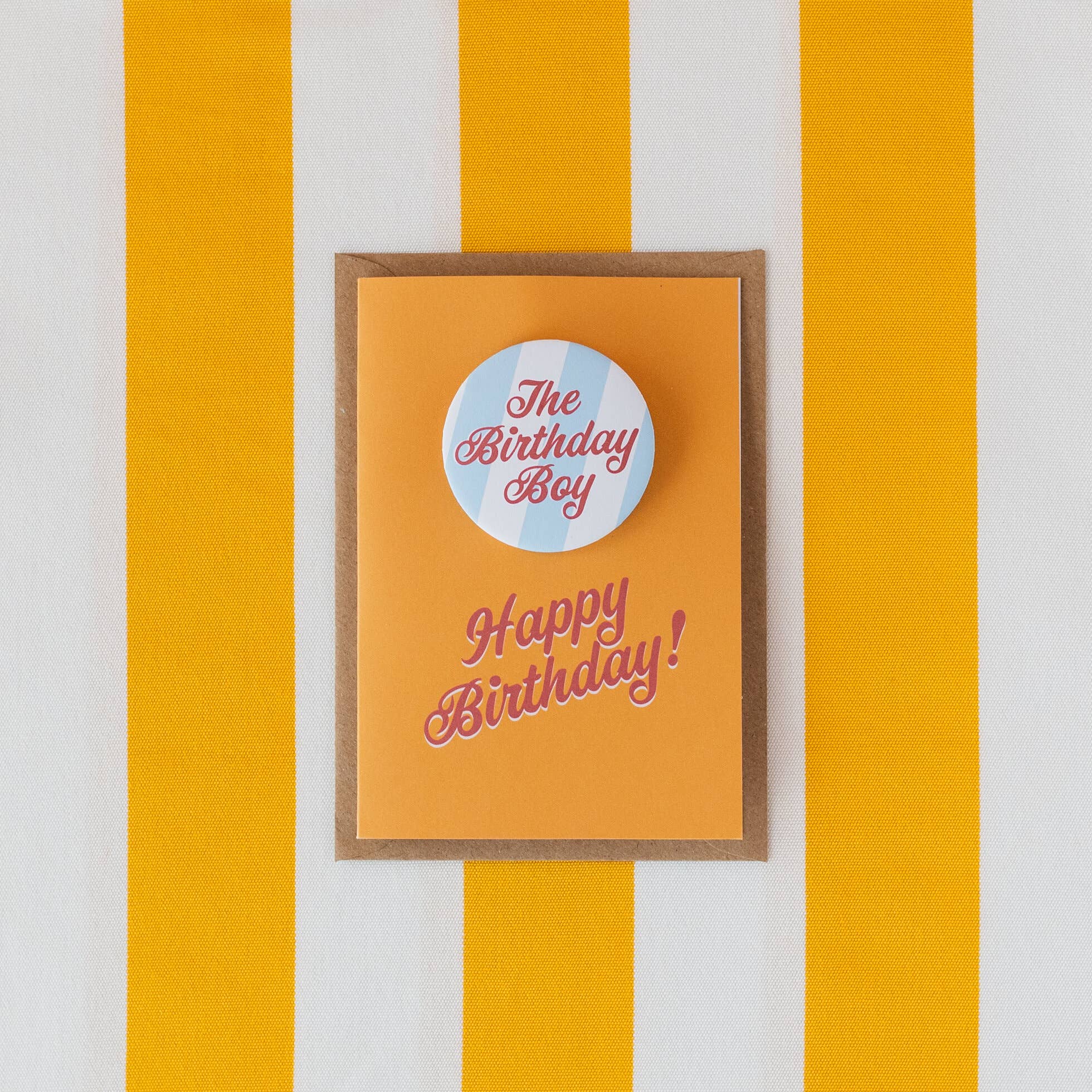 What's better than a birthday card? A birthday card with a badge! This popular collection of cards appeal to adults who want to be nostalgic of their childhood with their own birthday badge. The details: Removeable badge measures 55mm A6 Card - 148 x 105mm Contrast envelope All components made in the UK Badges are not recommended for children due to small parts The design has a nod to retro graphics, making this range perfect for fans of vintage style signage and ephemera. These cards are available naked or packed in cello. For high traffic areas, cellophane is recommended.