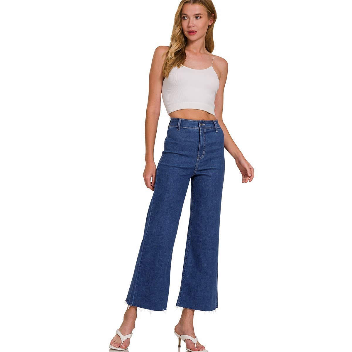 WASHED RIBBED CROPPED BRA PADDED V-NECK TANK TOP ZENANA