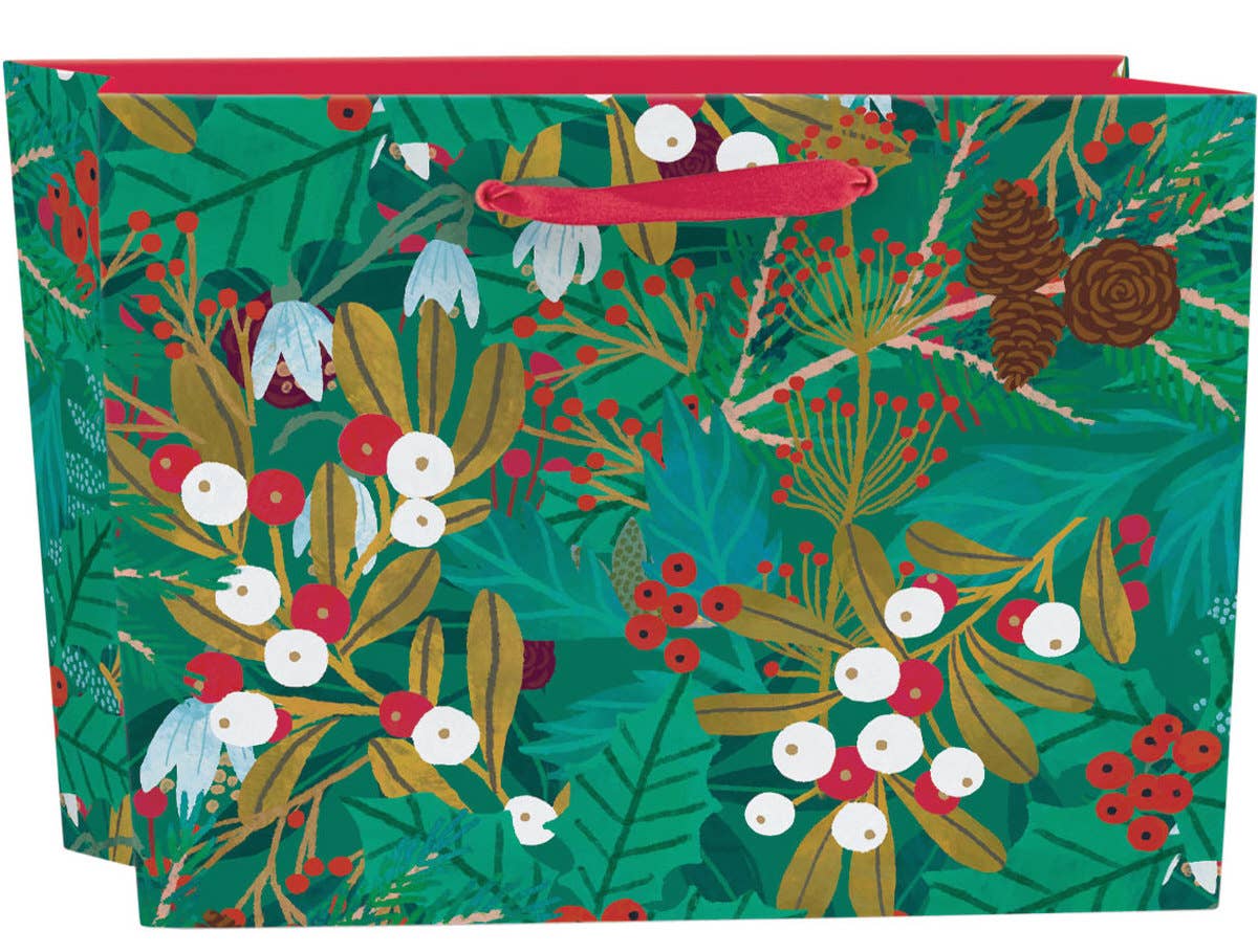 Wrap smarter, not harder. This reusable, reversible gift bag is made from 100% recycled plastic fibers and features a cheerful green star print that flips inside out for a fresh second snowy blue look. Durable, stylish, and easy to use — it’s a sustainable upgrade to traditional wrapping. As seen in Poosh by Kourtney Kardashian. 📦 Perfect for Medium Gifts – Fits candles, books, skincare sets, and more ♻️ Made from Recycled Materials – Supporting economic opportunities for women in rural India 🌿 Durable & Tear-Resistant – Built to be reused again and again Product Dimensions: 11" h x 9" w with elegant round bottom with a diameter of 6"