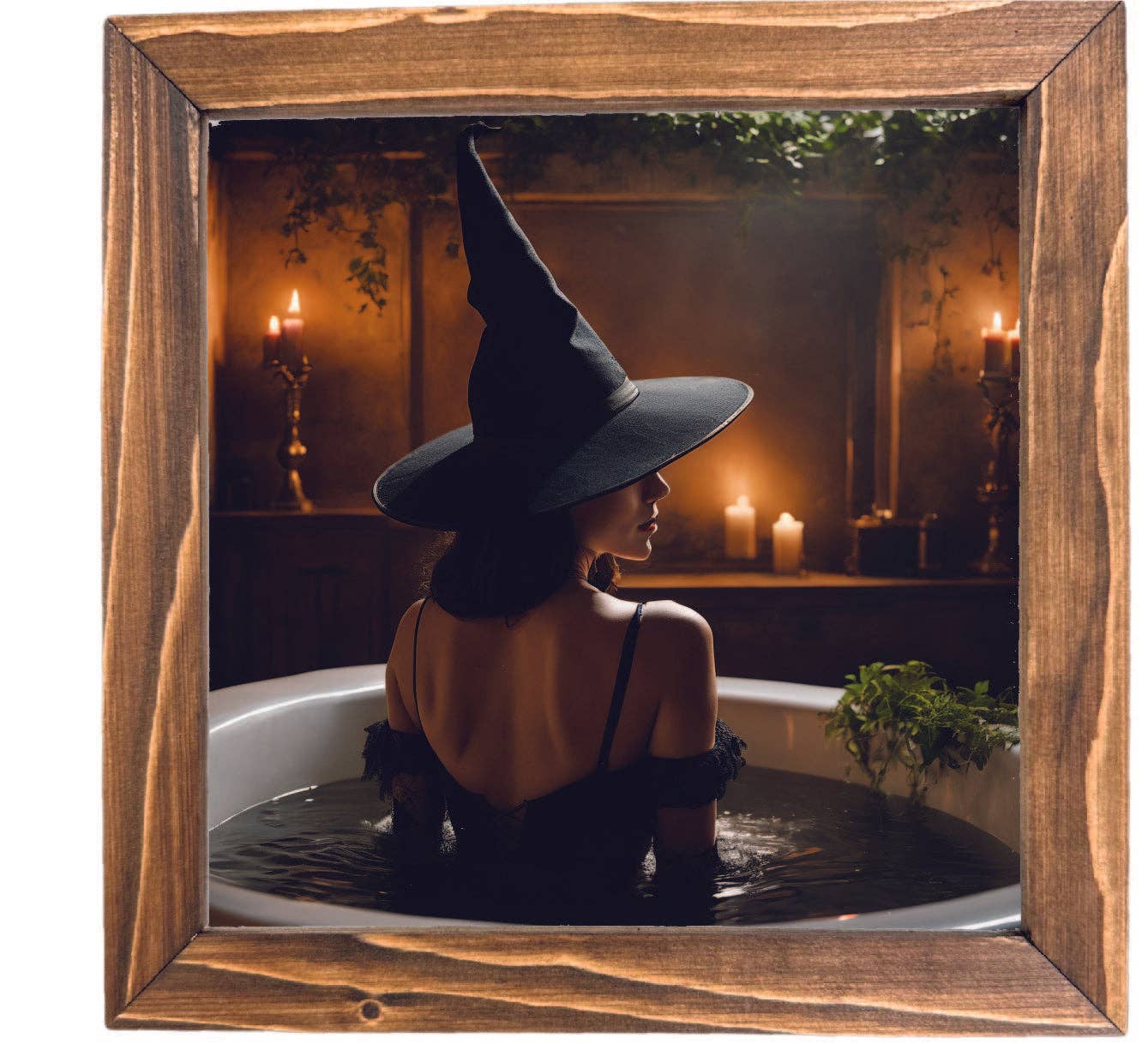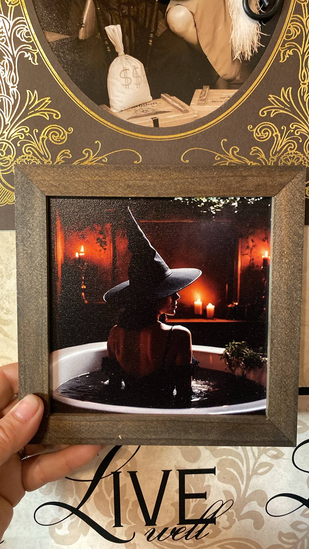 Tattoo Witch on Porch Framed Sign Halloween Decor