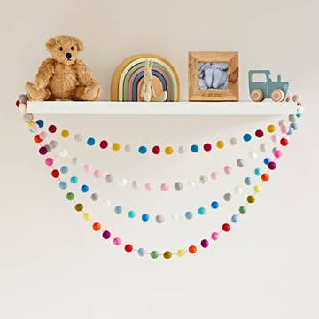 Fun fall decor! Adorable forest animal garland, measures 72″ with additional 3" loop on each end for hanging. Each garland includes 4 animals and 3 of the same color mushroom. Mushrooms some in assorted colors of pink, orange, red or green. These garlands are hand-felted by women in Nepal who receive a fair wage for their beautiful work!