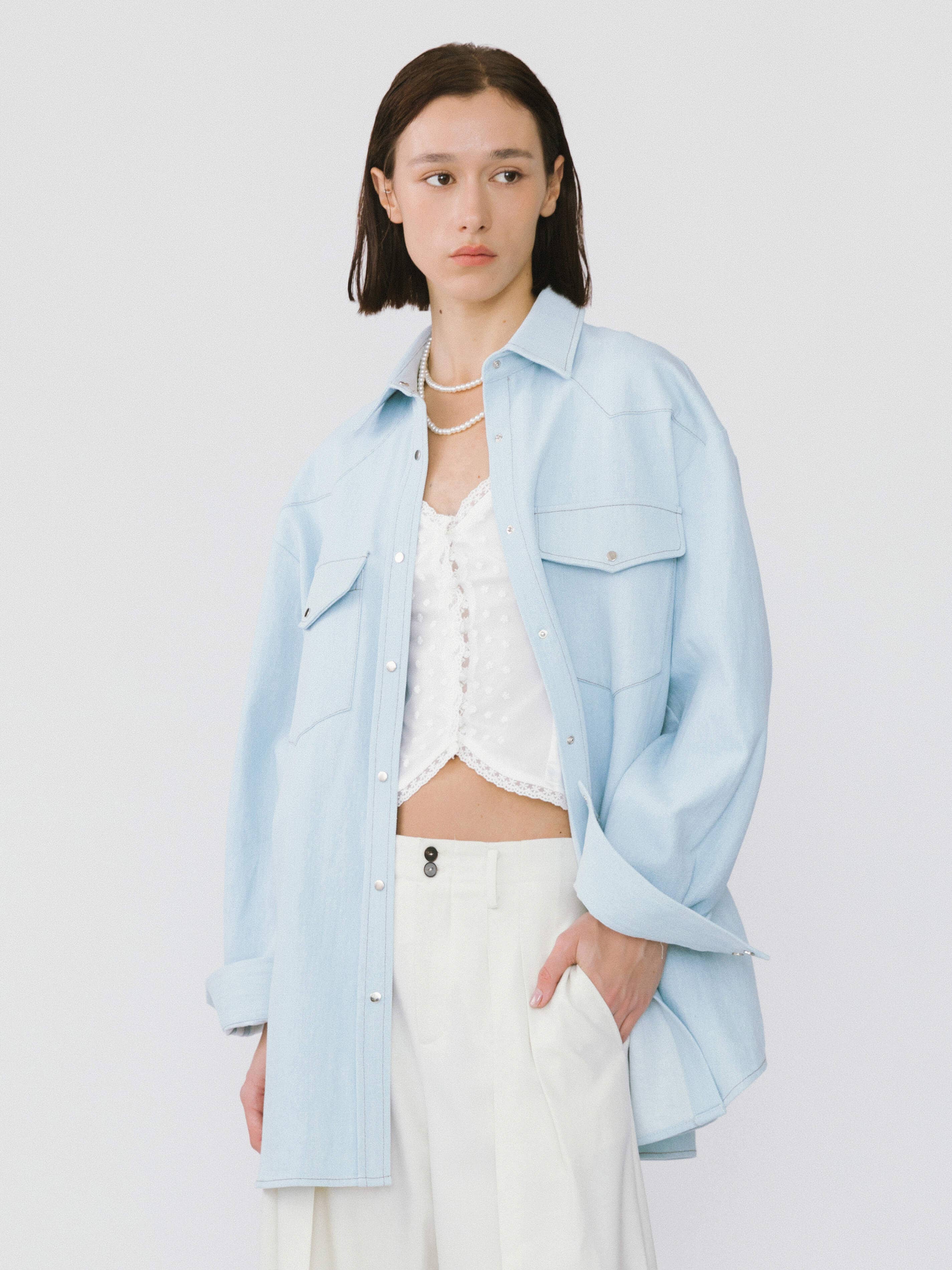 SKU: 22755J-LIGHT WASH-S, 22755J-LIGHT WASH-M, 22755J-LIGHT WASH-L Made in China Aesthetic: Casual Denim wash: Light wash Fabric: 100% COTTON Fit: Contemporary Sleeve length: Long-sleeve Weight: 0.88 kg (1.93 lb)