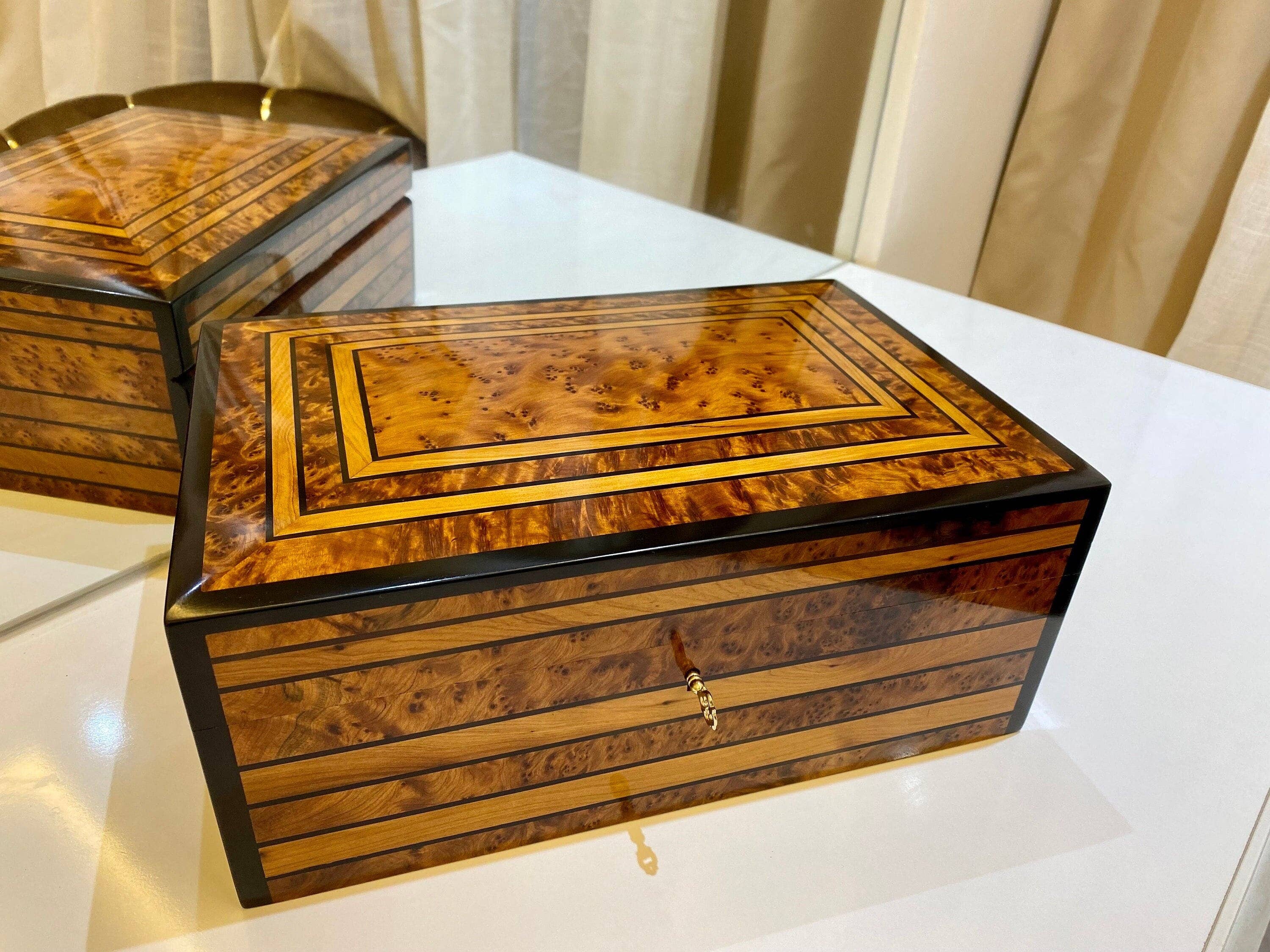 ✨ Looking for a Wedding Keepsake Memory box, got a birthday or event 🎂coming up? Not sure what to get your loved ones 💕 as a gift? AtlasPerles brings you its thuya wooden box handmade with love by Moroccan artisans, perfect for keeping jewelry 💍, valuable belongings and important papers, made from the finest quality timber and customized to fit your ring. The thuya ring box is the perfect balance between functionality and elegance. ✔ We offer personalized engraving, as well as suede leather lining on all our products. 📏 Outer measurements : Length : 10 cm - 4 inches width : 6 cm - 2.3 inches Height : 4 cm - 1.5 inches 📏 Inner measurements : Length : 8 cm - 3 inches width : 5 cm - 2 inches Height : 3 cm - 1 inches ✈ Shipping and estimated arrival (Express Fast shipping using DHL delivery service 🚚): It takes 1 day to ship your order after receiving it, plus 3-5 business days using express shipping to get your order. ♻ If you're not happy for any reason with our Box, feel free to return it back if you're not satisfied 😊 📩 Feel free to contact us for any information or questions, we will reply you as soon as possible.