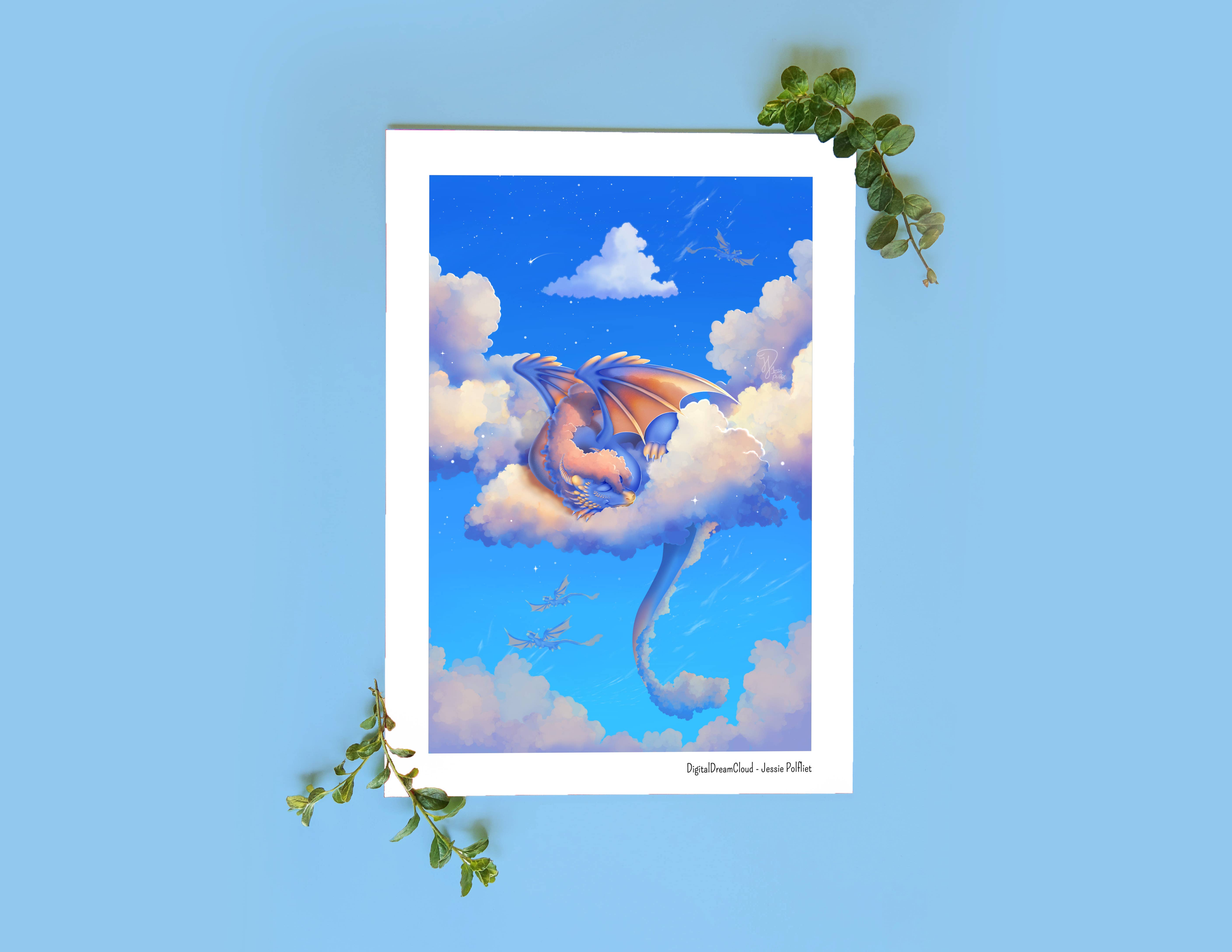 This cute dragon likes to sit on flowers to show off his beautiful wings. Butterfly dragons are much lighter than normal dragons. Drawn with clipstudiopaint. The illustration is printed on super sturdy 350 gram paper, off-white. Coated on both sides with a light gloss (more matte than glossy)
