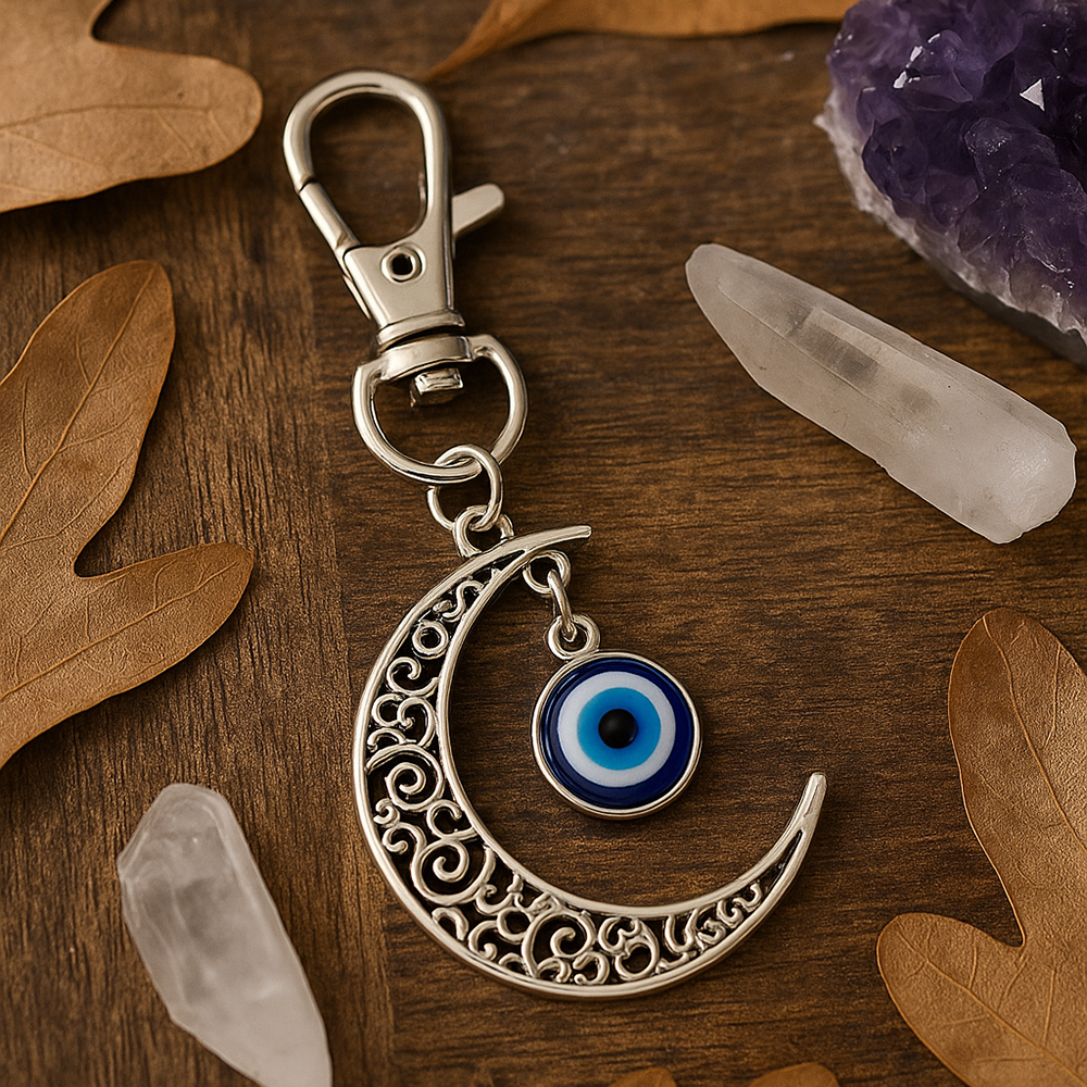 Evil Eye Hamsa Hand Keychain combining two protective symbols in one best-selling design. With metal detailing and multiple glass beads, it’s ideal for tills, gift sections, and spiritual collections.
