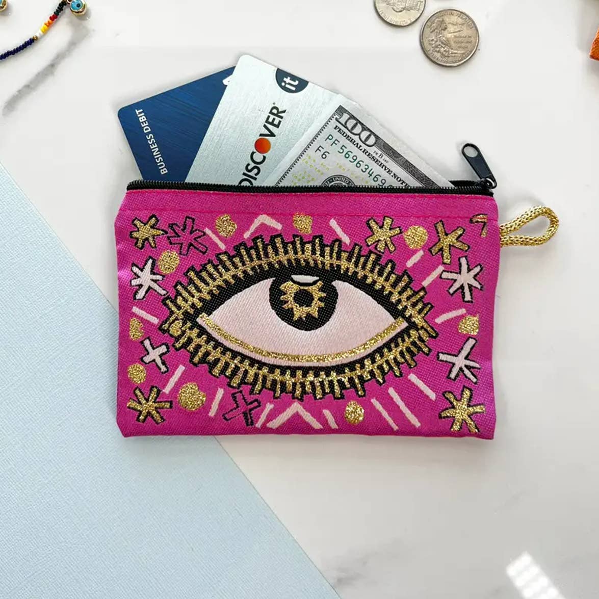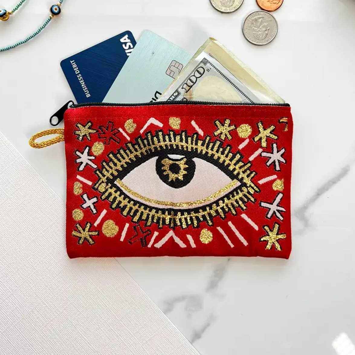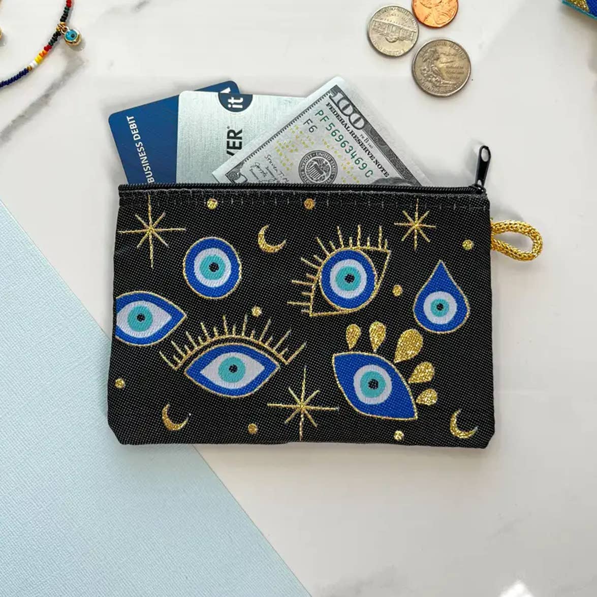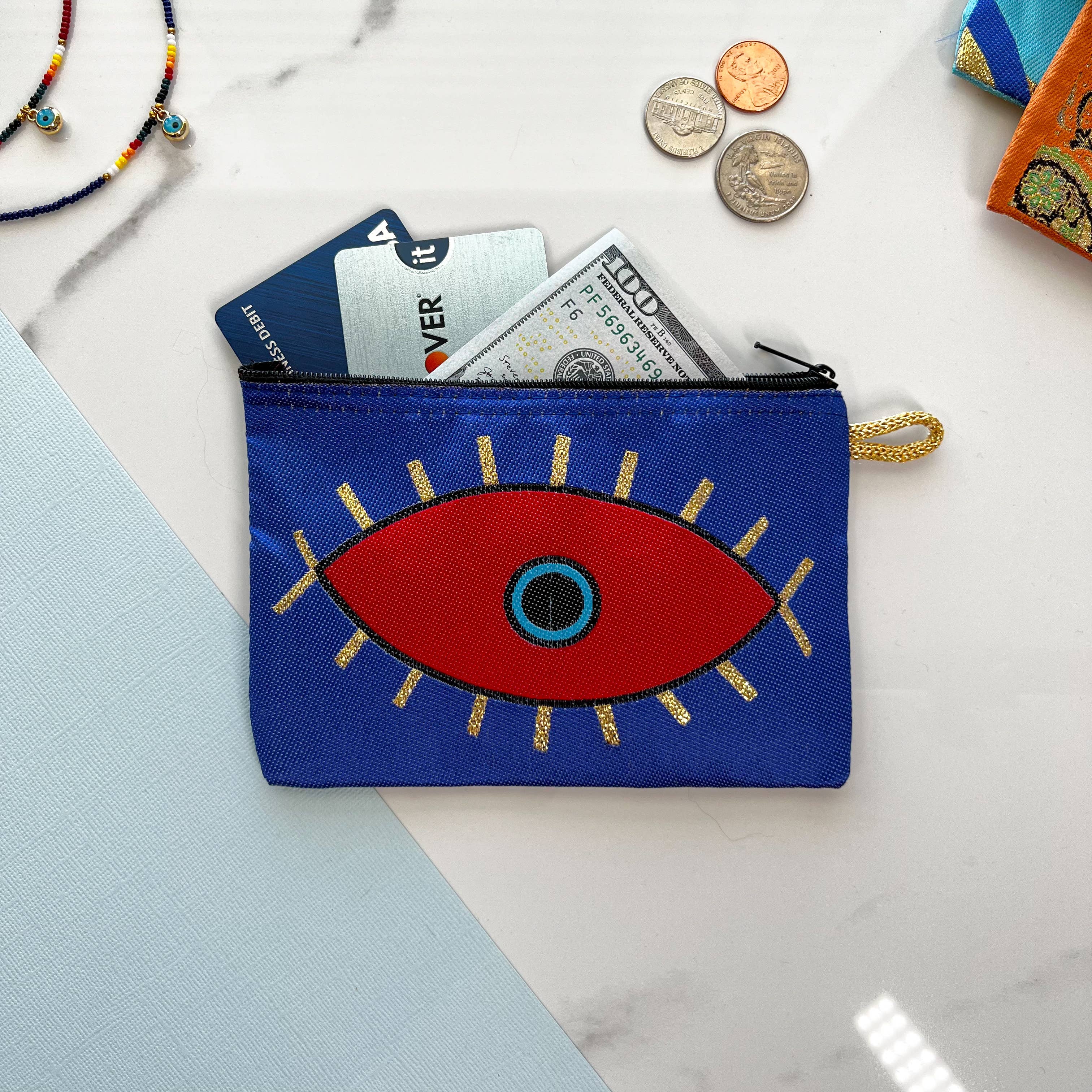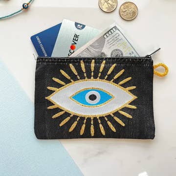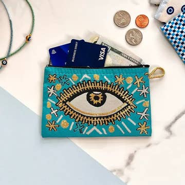 Evil Eye Clutch Purse, Boho Slim Wallet with Wristlet