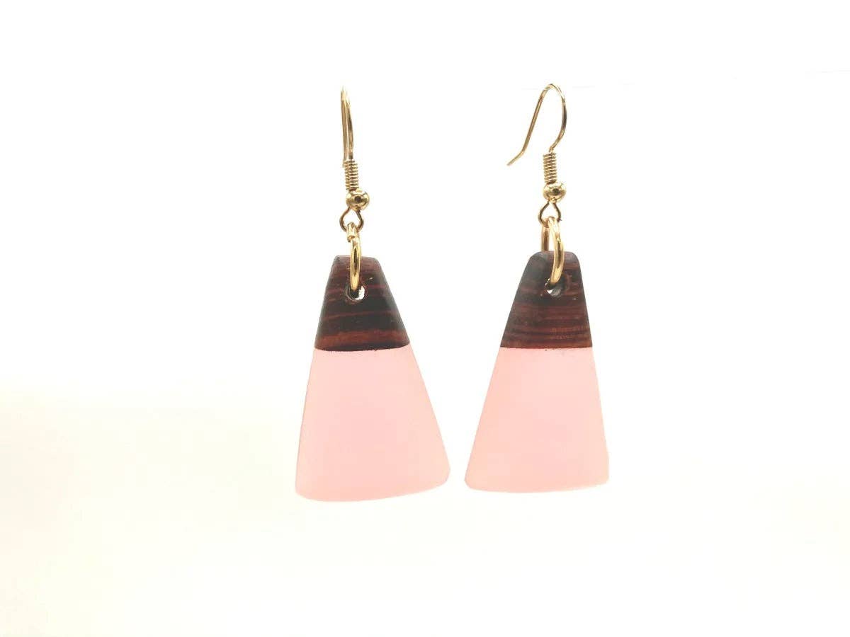 Colour block contrast dangle earrings made from polymer clay and high shine resin. Posts and jump rings are stainless steel.