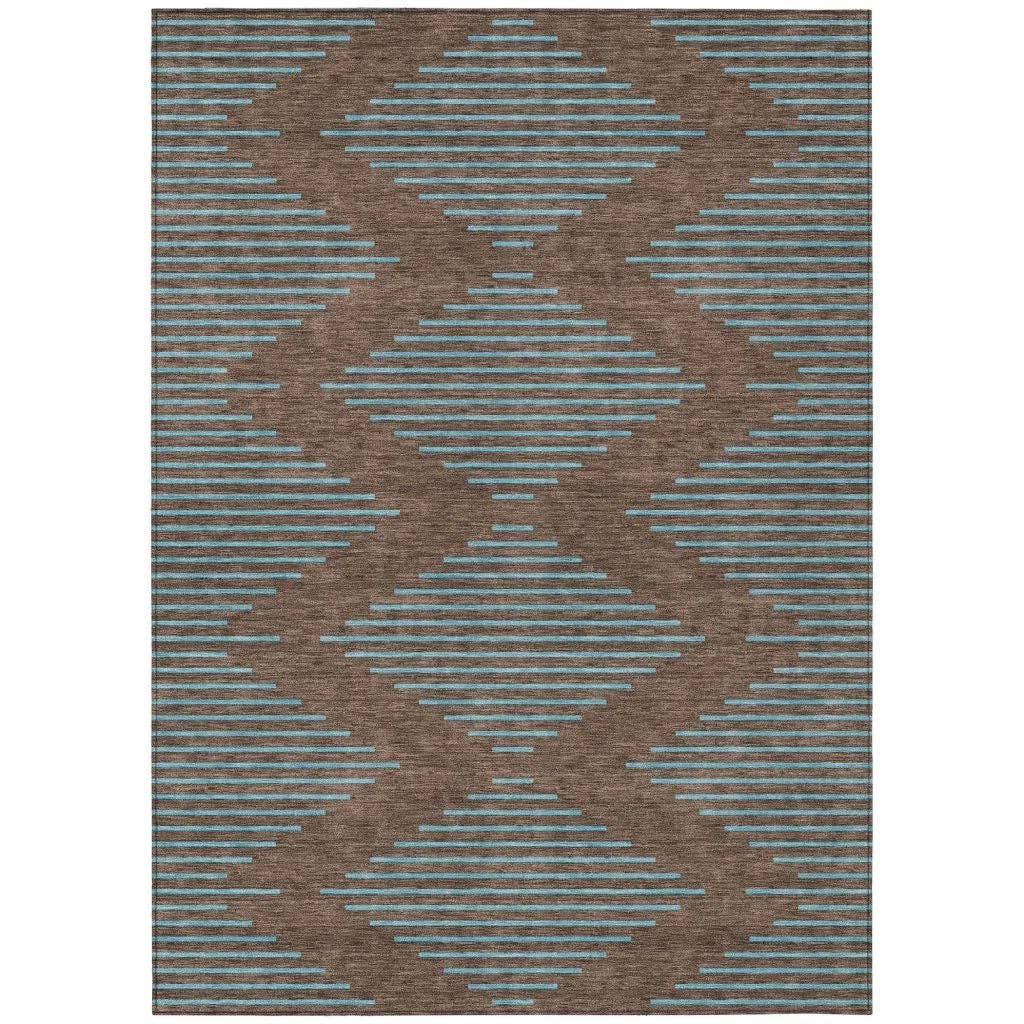 Bring a modern touch to your home with this stylish transitional rug. Featuring a two-toned abstract pattern, it adds a contemporary flair to any space, effortlessly complementing your existing decor. Designed for both indoor and outdoor use, it is UV stabilized to maintain its vibrant teal color. This rug is ideal for any setting, ensuring that your space looks fresh and inviting. This ultra-thin rug is practical for high-traffic areas, combining style with functionality. The polyester material ensures it is lightweight, making it easy to move and clean. The rug's machine-washable feature adds to its convenience, especially for homes with pets and children. With its non-skid backing, it stays securely in place, providing safety and comfort underfoot. Orlena Teal Washable Rug Stain Resistant Indoor-Outdoor Features: * Available Sizes: 2'3" x 7'6", 2'6" x 3'10", 3' x 5', 5' x 7'6", 8' x 8', 8' x 10', 9' x 12', 10' x 14' * Weights (lbs): 5, 4, 5, 12, 18, 22, 31, 40 * Material: Polyester * Color: Teal * Ultra-Thin * UV Stabilized for Indoor or Outdoor Use * Ultra Thin Polyester Flat Woven Construction * Incorporated Non-Skid Backing * Machine Washable * Fast Drying After Rainfall * Non-Reversible * Outdoor Safe * Stain Resistant * Pattern: abstract * Suitable for both Indoor-Outdoor use * Country Of Origin: USA Care Instruction: Easy to clean. Larger rug sizes may not fit into a residential washing machine. They may be washed in a commercial size washing machine or hosed-off outside with mild soap and water. Air-dry, do not machine dry. Vacuum (without a beater bar), shake out or sweep regularly. Due to various screen settings the color of the item may look slightly different in person from what you see on your screen. We try to make sure that the image you see is as accurate as possible.