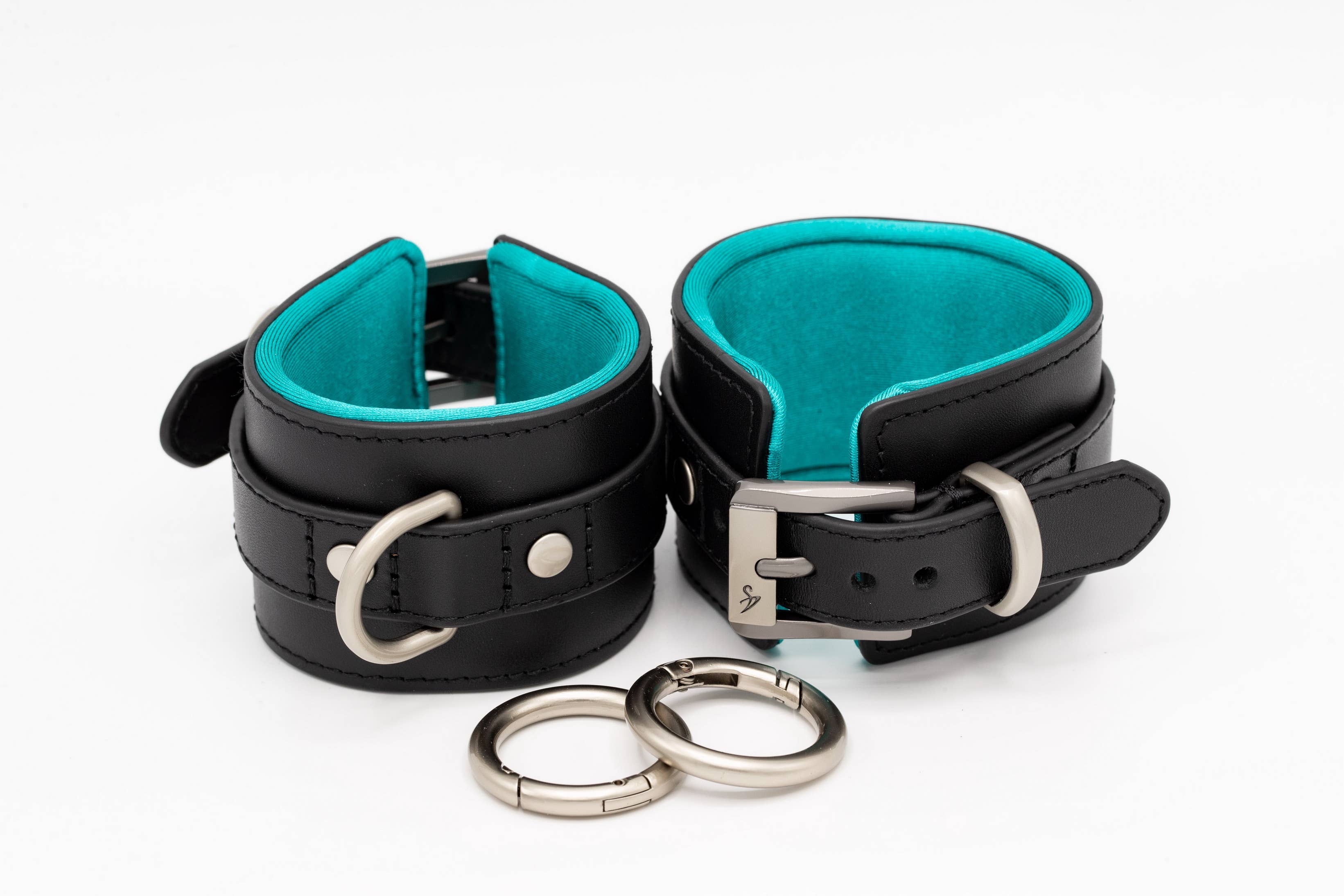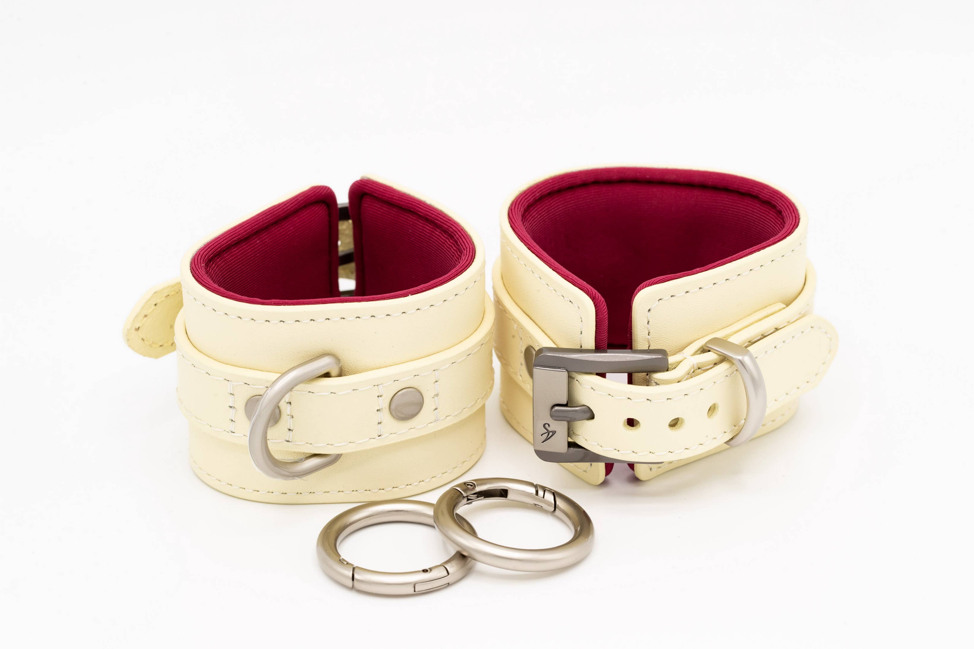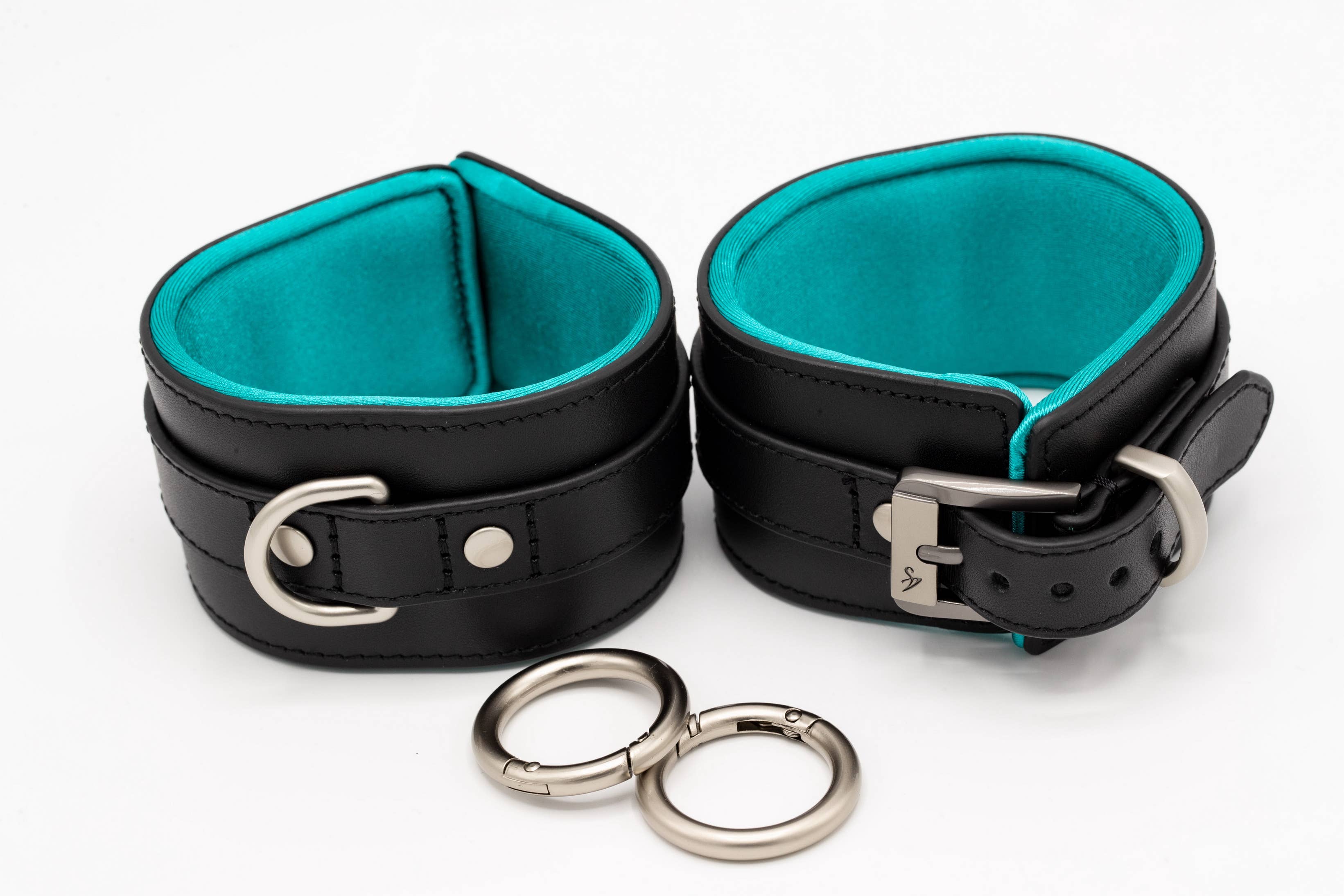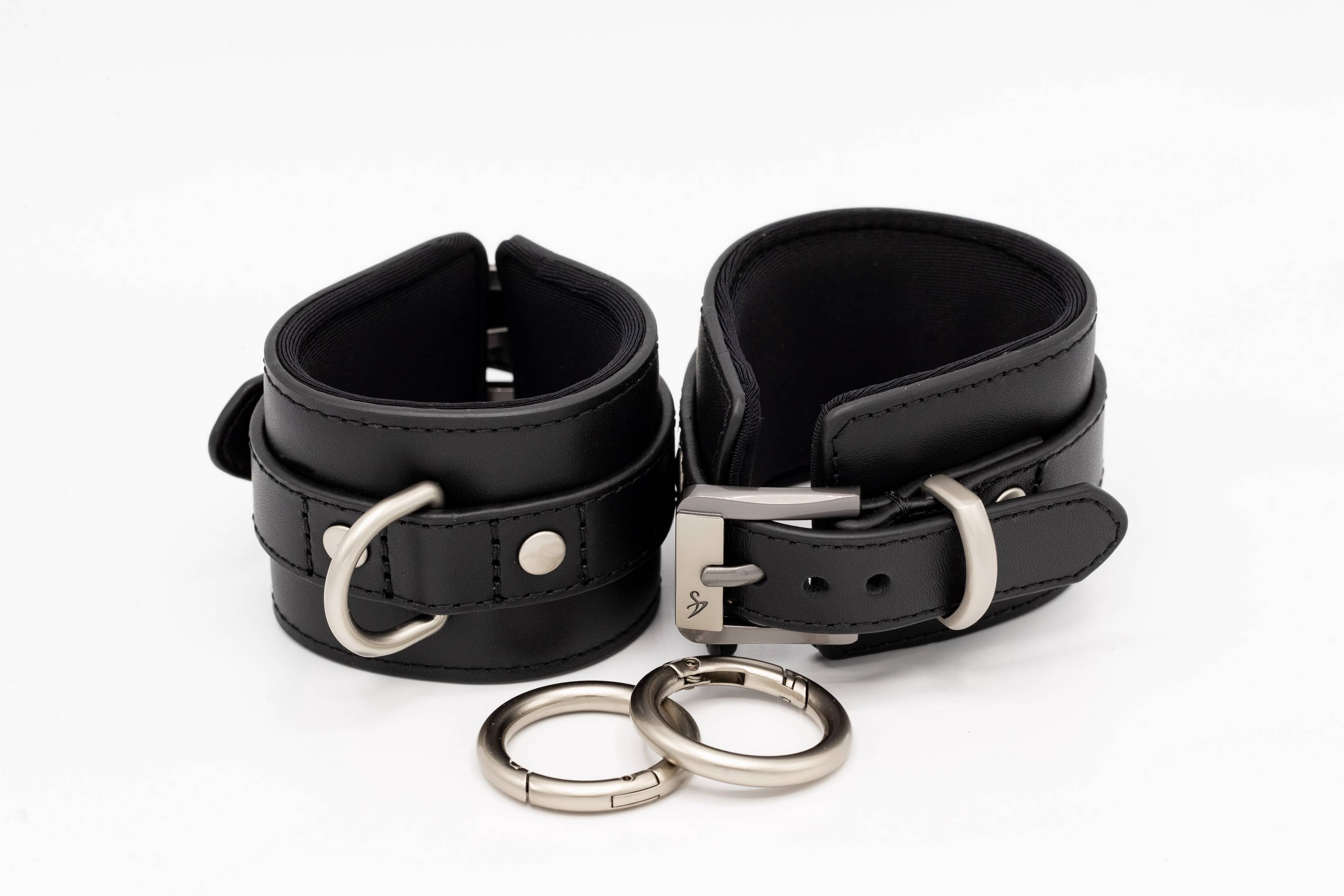 Black - red, but different... No rubbing, pressing, scratching or uncomfortable sweating — just perfect wearing comfort in any position, guaranteed! The inner surfaces are padded and made from breathable and water-repellent functional fabric The use of genuine leather ensures a high level of durability Our high-quality fasteners allow easy opening and closing and guarantee a firm hold in any position There is a matching carabiner ring for every restraint Functional and elegant at the same time. Our restraints are 5 cm wide and only 7 mm high and do not overlap. Things get wilder — no problem, our restraints can withstand a pulling force of up to 180 kg. One size — not with us! Choose the right size for you: Small - ideal for a wrist circumference of 15 to 18 cm Medium - ideal for a wrist circumference of 18 to 20 cm Large - ideal for a wrist circumference of 20-23 cm