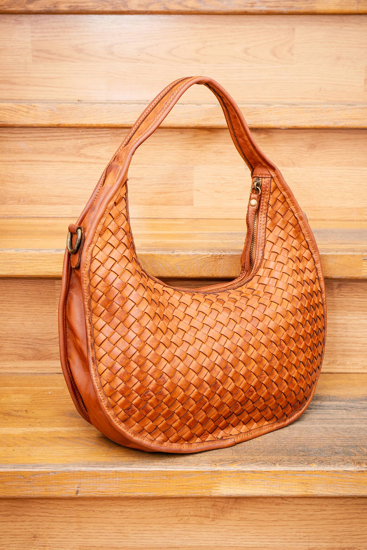 Vintage cowhide handbag. Nails around the handle. Main zip closure. Detachable and adjustable shoulder strap. Inner zipped pocket. Dimensions: 33 x 29 x 5 cm