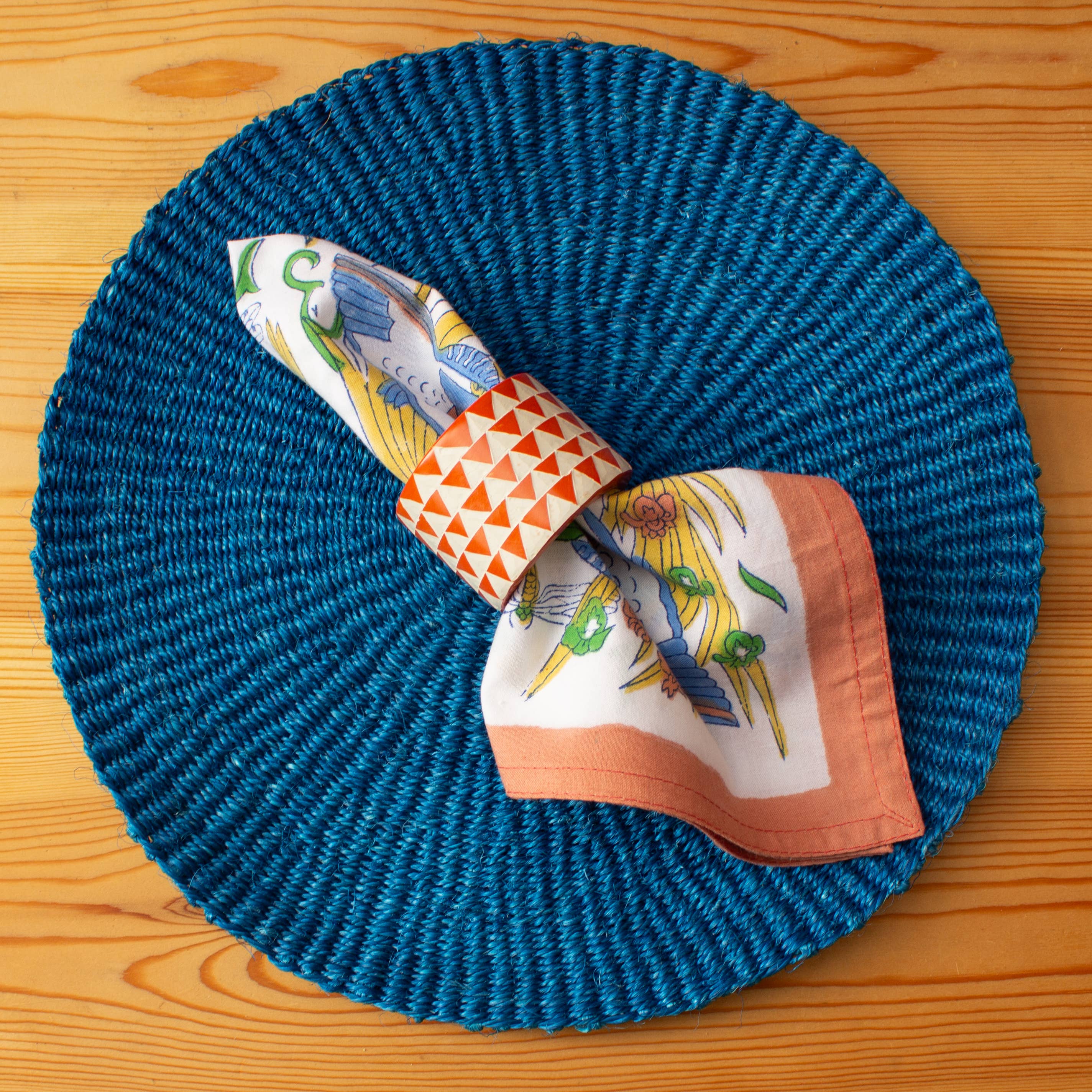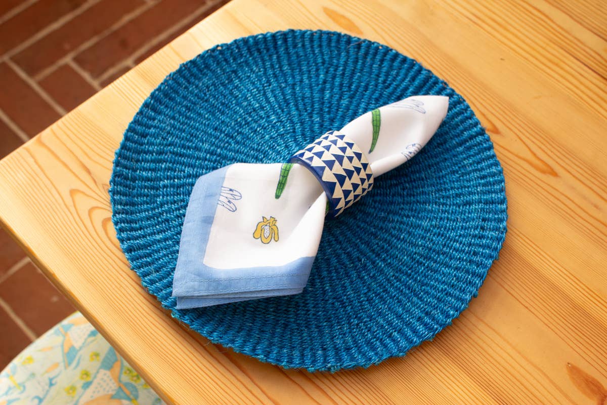 Place the heart of Kenya in your home with our woven placemats. Handwoven by expert artisans, our placemats are thicker and sturdier than traditional fabric placemats. Protect your delicate table surface and cutlery in style. Ethically curated, chic, and bohemian, there's a colour to suit everyone's tastes. The high quality material and craftsmanship ensures that they will last you for years to come. Why not mix and match colours for a fun eclectic table setting? DETAILS Materials: Natural Handwoven Sisal. Sizing: 31cm Diameter Approximately. Each Placemat Sold Individually. CARE Wipe clean with a damp cloth and leave to dry naturally.