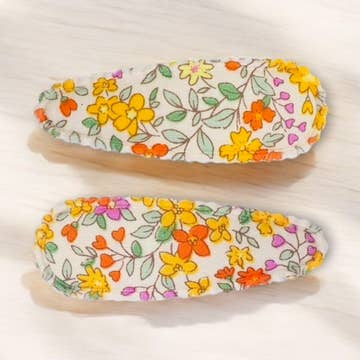 Wholesale Triangle Embroidered Floral Snap Hair Clips | Green&Mustard