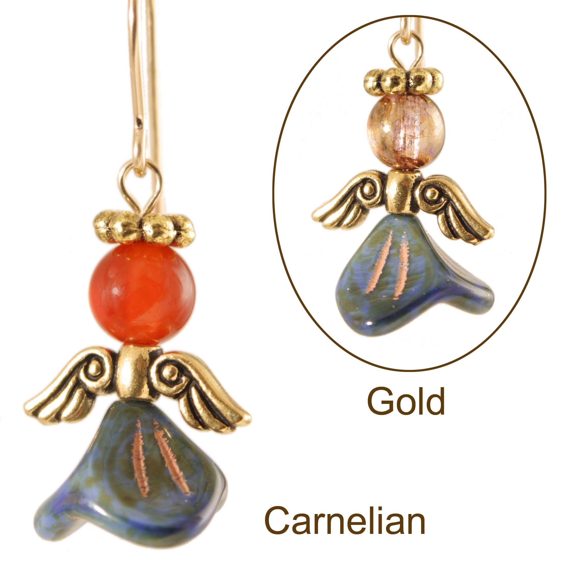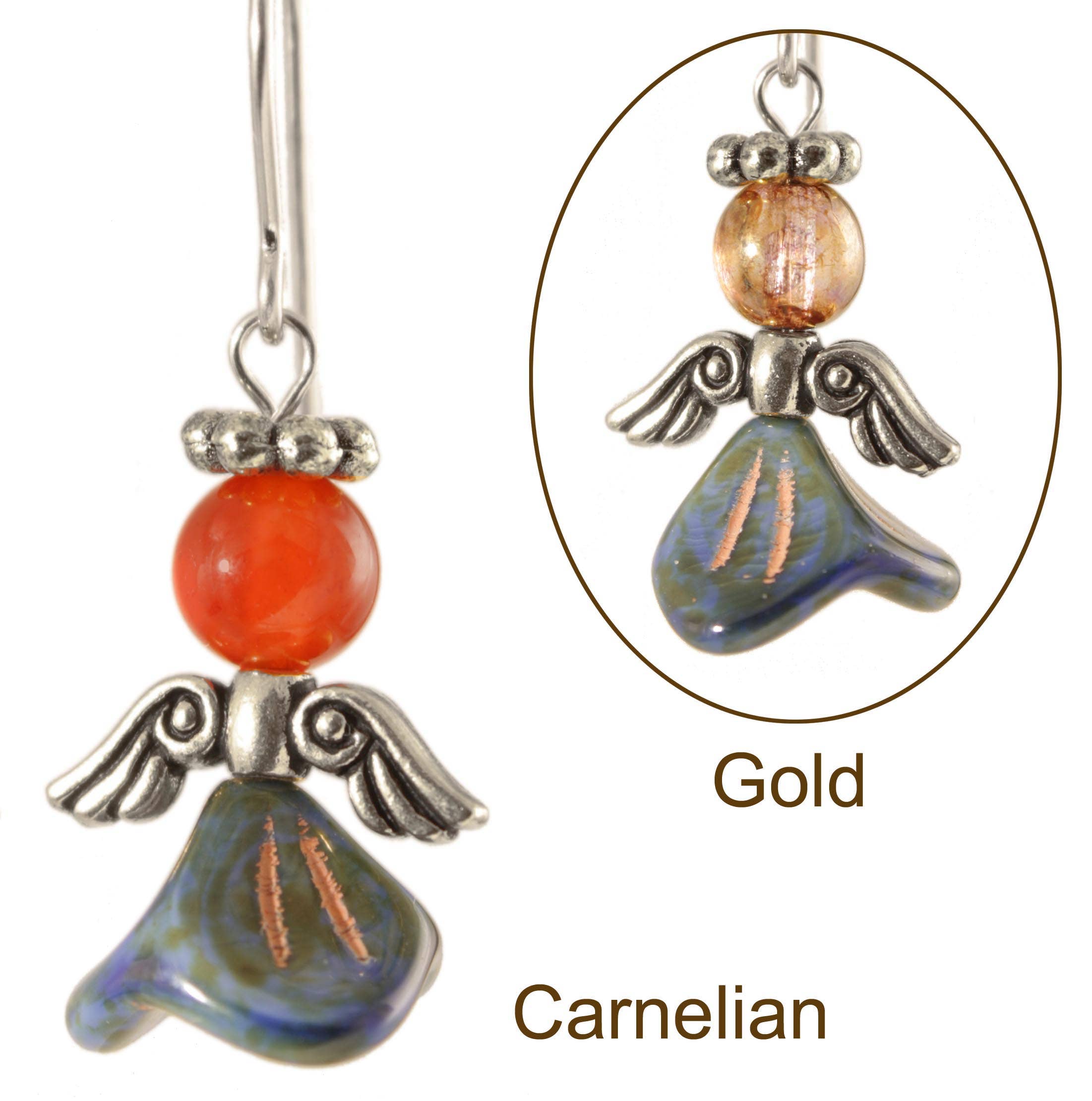 Elemiah is the Angel of Inward Journeys, believed to help us at very difficult times and is a source of wisdom. These pretty angels are made of glass with silver luster. These angel earrings wings and halos of lead-free pewter. They hang from Sterling Silver hooks.
