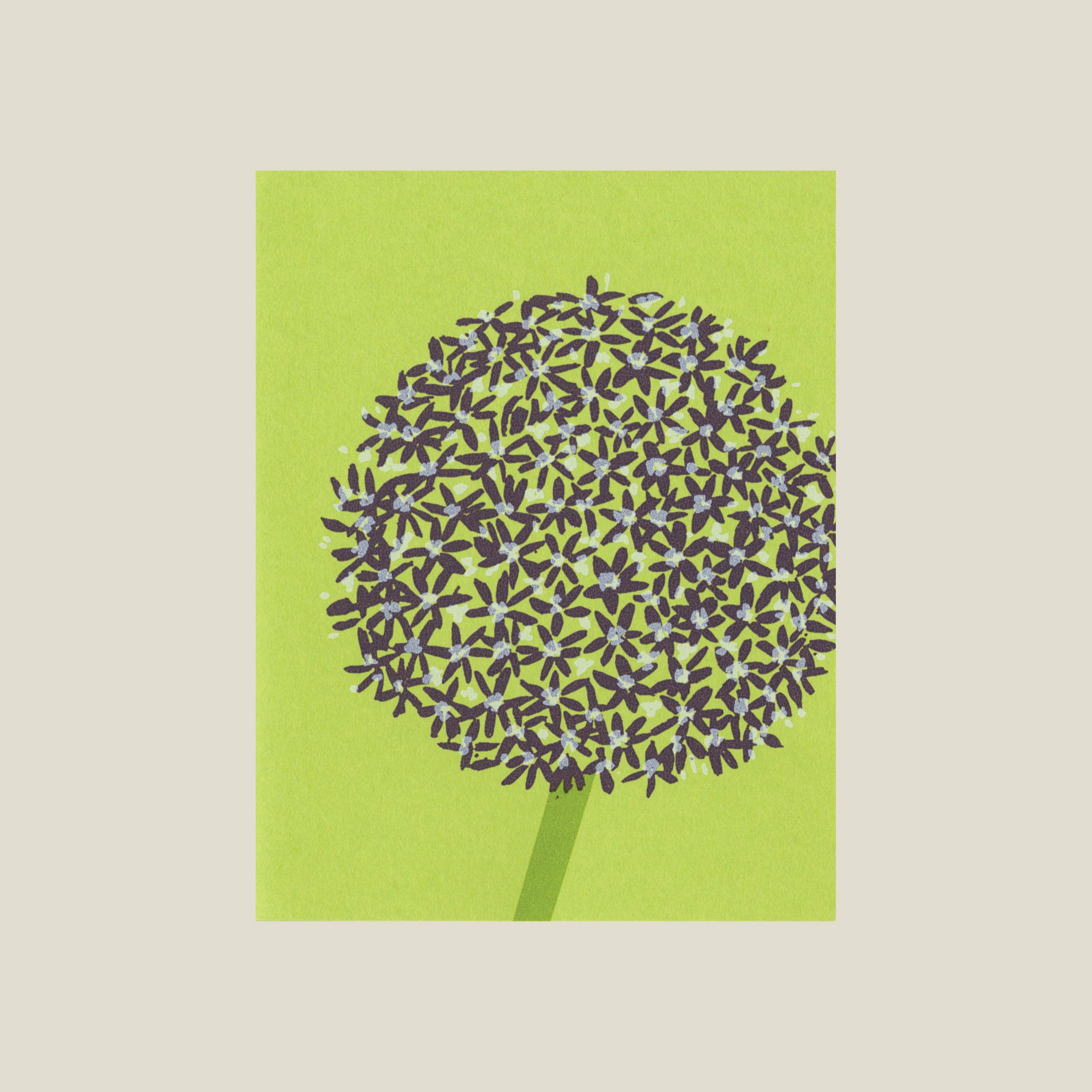 This card is hand silk-screened with white and bronw ink on 100# French’s recycled Box Brown Kraft-tone cover, and comes with a white envelope. The inside is left blank for your own message. This card is sold as a single. Each single comes in a clear sleeve. Finished size is A2 (5.5 × 4.25").