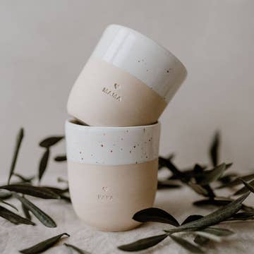 We are so happy to introduce you to a new member of our stoneware mug family, our wonderful new mug dad is finally here! We have put a lot of passion into a new collection that was developed by us from the form, the sound, the glazing and the design. A small pottery from Portugal lovingly handcrafted these wonderful mugs and is a great new companion on our creative path. Our mugs make hearts beat faster, who love the individuality of clay & glaze, as each individual mug has its own unique touch. Since all cups are made by hand, fired, embossed, sanded, glazed & re-fired, there are differences in print depth, height and straightness.