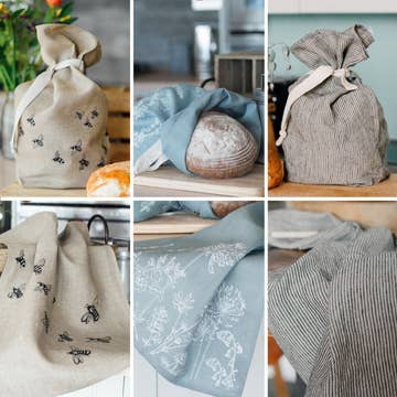Olive Loom Bread Bags Naturally Fresh, Beautifully Made Our bread bags are crafted from 100% natural cotton or European linen, allowing your bread to breathe and stay fresh. The breathable weave helps prevent moisture buildup, keeping your sourdough or everyday loaf soft inside and crisp outside. Sustainable by Design Each bag is made from remnants of our designer tea towels, European linens, and heirloom apron prints — giving new purpose to high-quality fabrics that deserve a second life. Thoughtful Craftsmanship Every Olive Loom bag is individually handmade by a skilled seamstress. Finished seams prevent fraying, and the enclosed cinch closure keeps your bread secure. Each bag proudly carries the Olive Loom label, your mark of lasting quality. Perfect Size for Everyday Use Measuring 12 x 14 inches, this bag fits a standard loaf or a hearty sourdough round. Practical, reusable, and easy to clean — it’s a staple for any kitchen that values both beauty and sustainability. Purpose with Heart When you choose Olive Loom, you support women artisans who cannot work traditional jobs. Your purchase helps them use their talent and craftsmanship to create something both useful and meaningful.