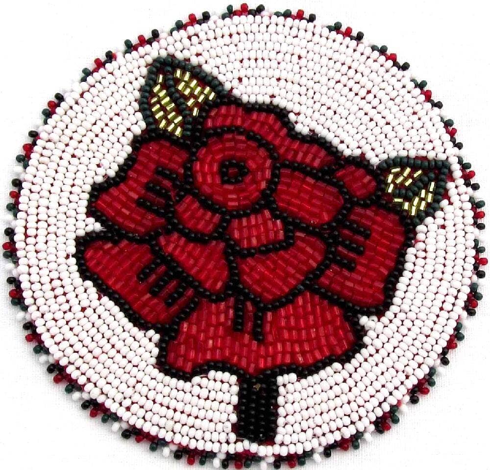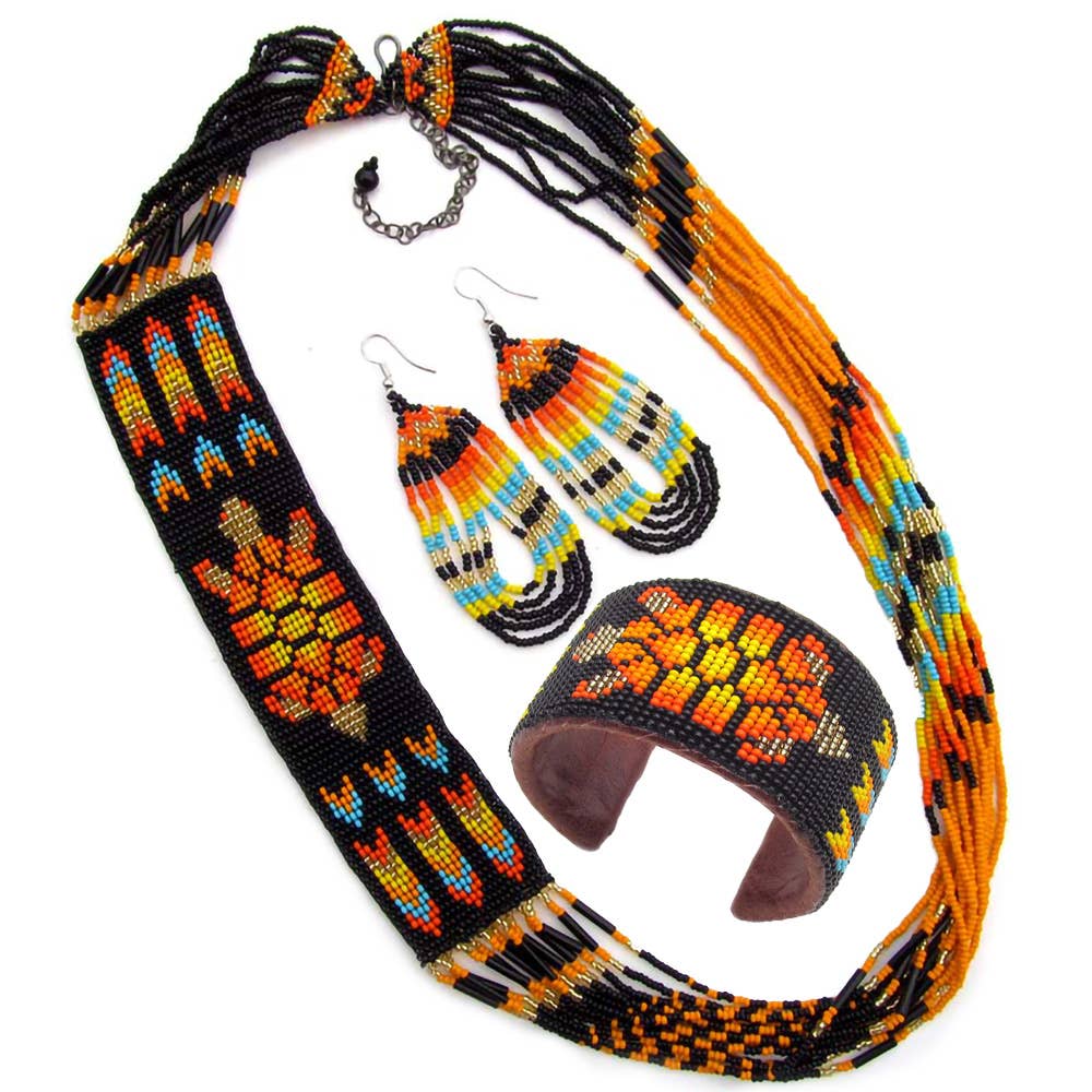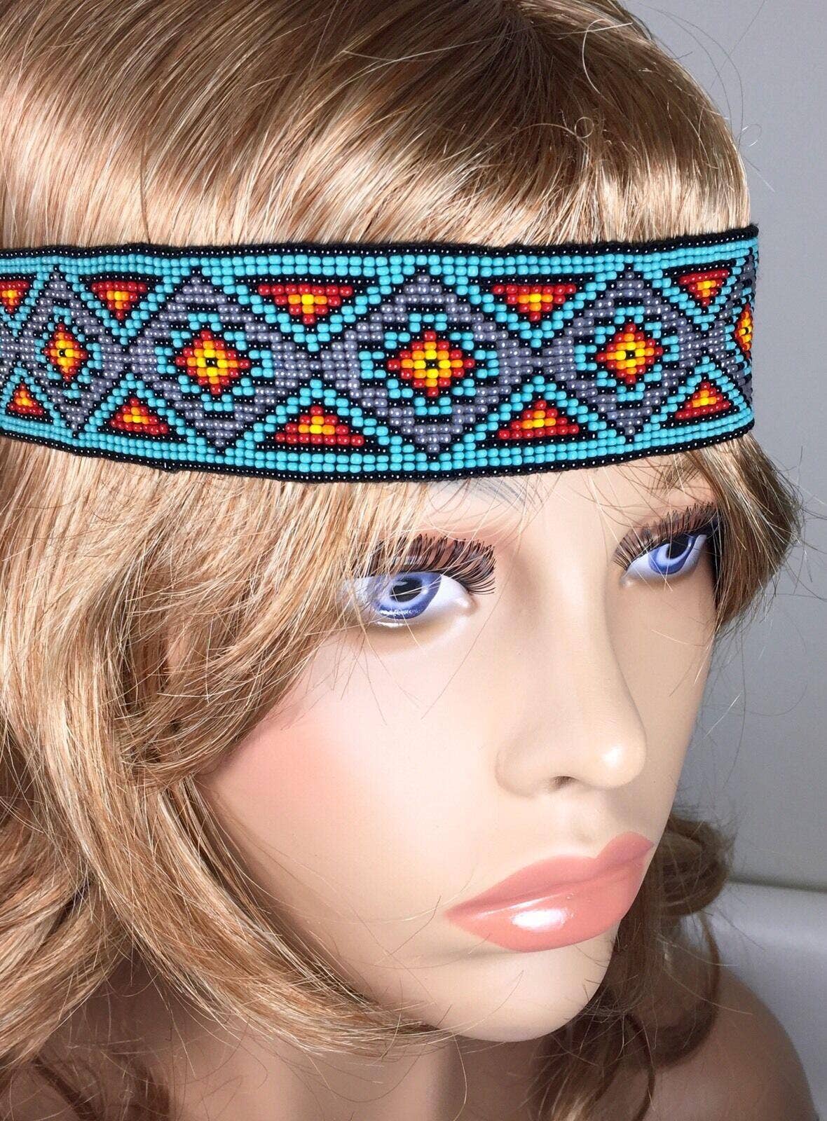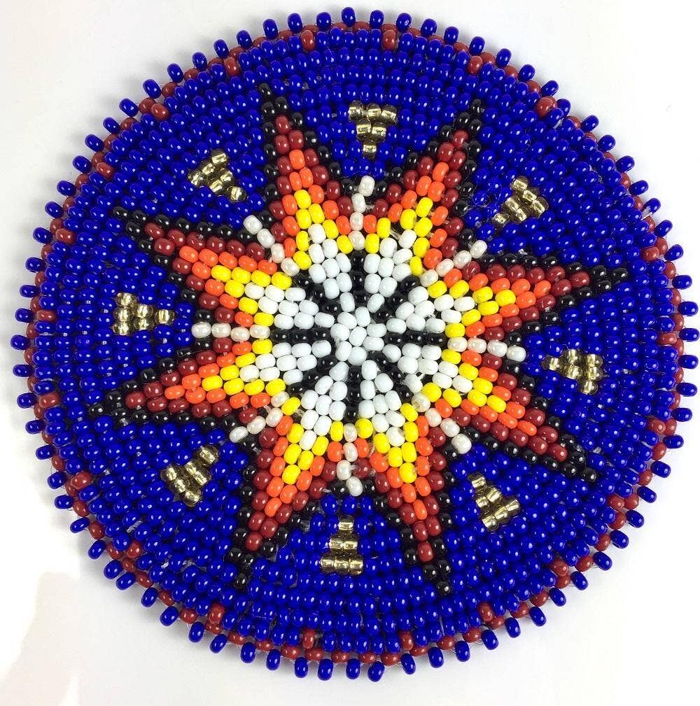Wholesale Beaded Ponytail Holder Hair Tie Red Fire Medallion Beadwork Fringe