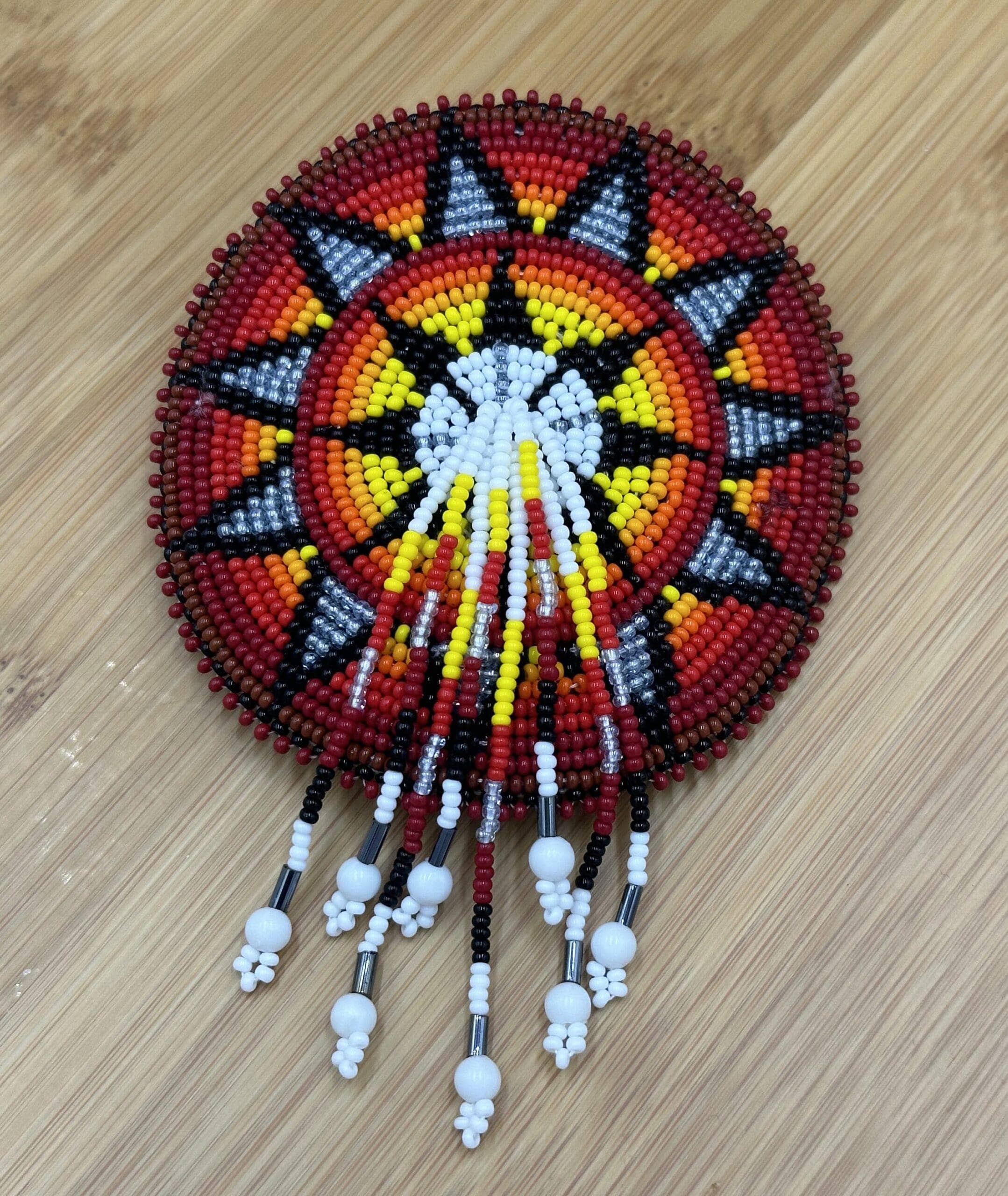 Beaded Ponytail Holder Hair Tie Red Fire Medallion Beadwork Fringe