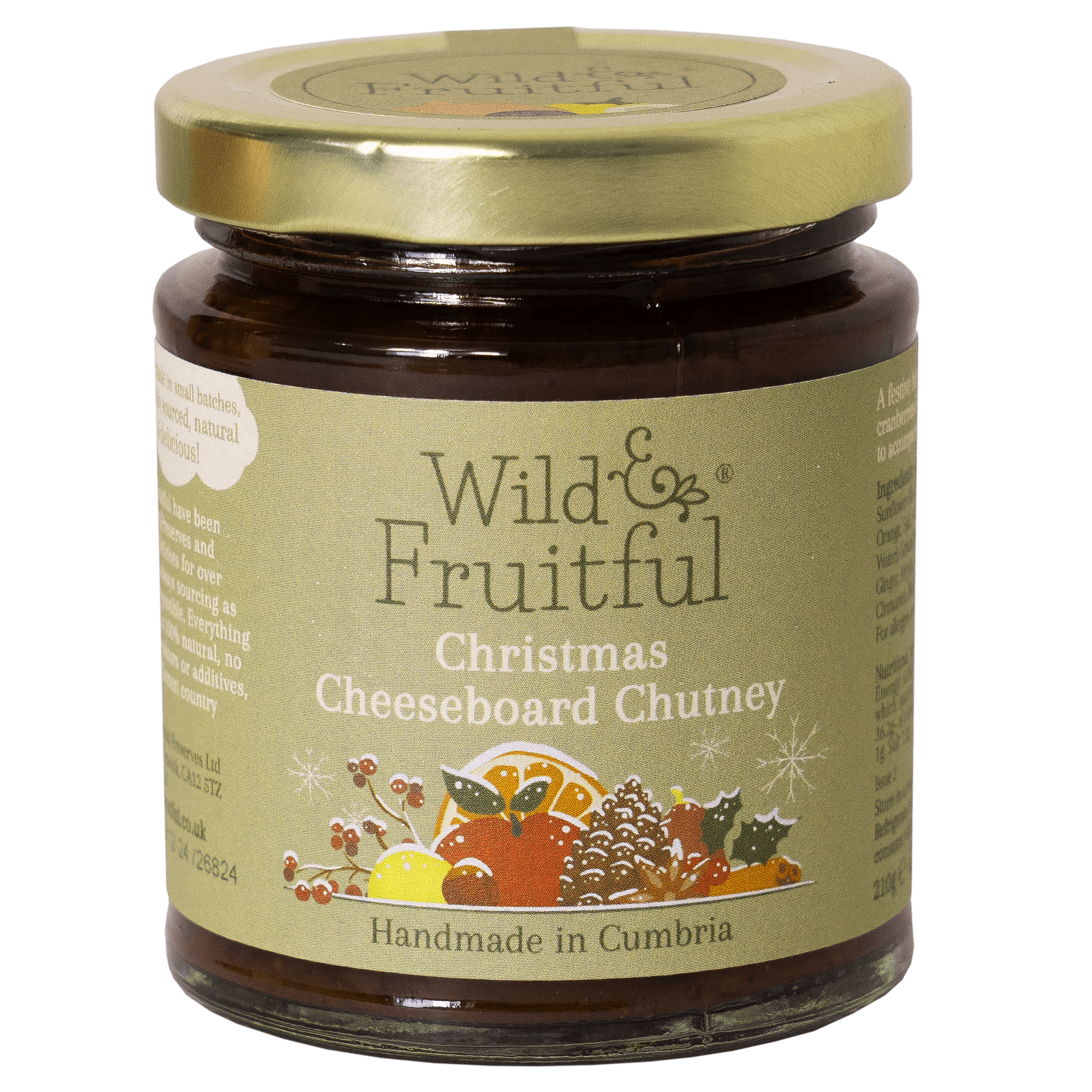 Add our Festive Chutney to your Christmas table. With flavours from cranberries, plums and late-bottled vintage Port, this chutney is ideal with turkey, ham, Brussels sprouts and parsnips. Add to your Christmas cheeseboard for a festive treat. Whether you decide to dip, spread, spoon or stir, this artisan chutney will bring a festive flavour to your favourite seasonal dishes. Our small batch, artisan chutney and relish flavours are made right here in Yorkshire. Nutritional Information Contains per 100g: Energy: 729.9kJ / 172.1kcal Total Fat: 0.2g of which saturates: 0.0g Av Carbohydrate: 41.1g of which sugars: 39.8g Protein: 0.4g Salt: 1.4g Ingredients & Allergens Sugar, Onion, Distilled Malt Vinegar (from BARLEY), Apples, Cranberry (16%), Plums (14%), Port (SULPHUR DIOXIDE) (2%), Salt, Spices. (Allergens in CAPITALS) Storage Refrigerate after opening and consume within 6 weeks.