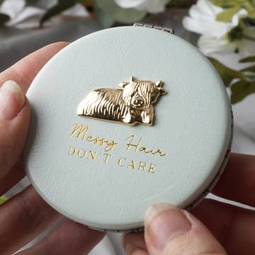 Embrace the delightful contrast of cute and edgy with our Strawberry Skull Heart-Shaped Compact Mirror. The heart-shaped compact features a playful skull adorned with sweet strawberries - a unique accessory for the begrudgingly mortal. This 2.5" compact opens to reveal two mirrors: a true-to-scale mirror and a magnified mirror to help you see the fine details. Whether you're adjusting your hair or makeup, or simply checking your sweet self out, this pocket-sized compact will help with those on-the-go touchups anywhere.
