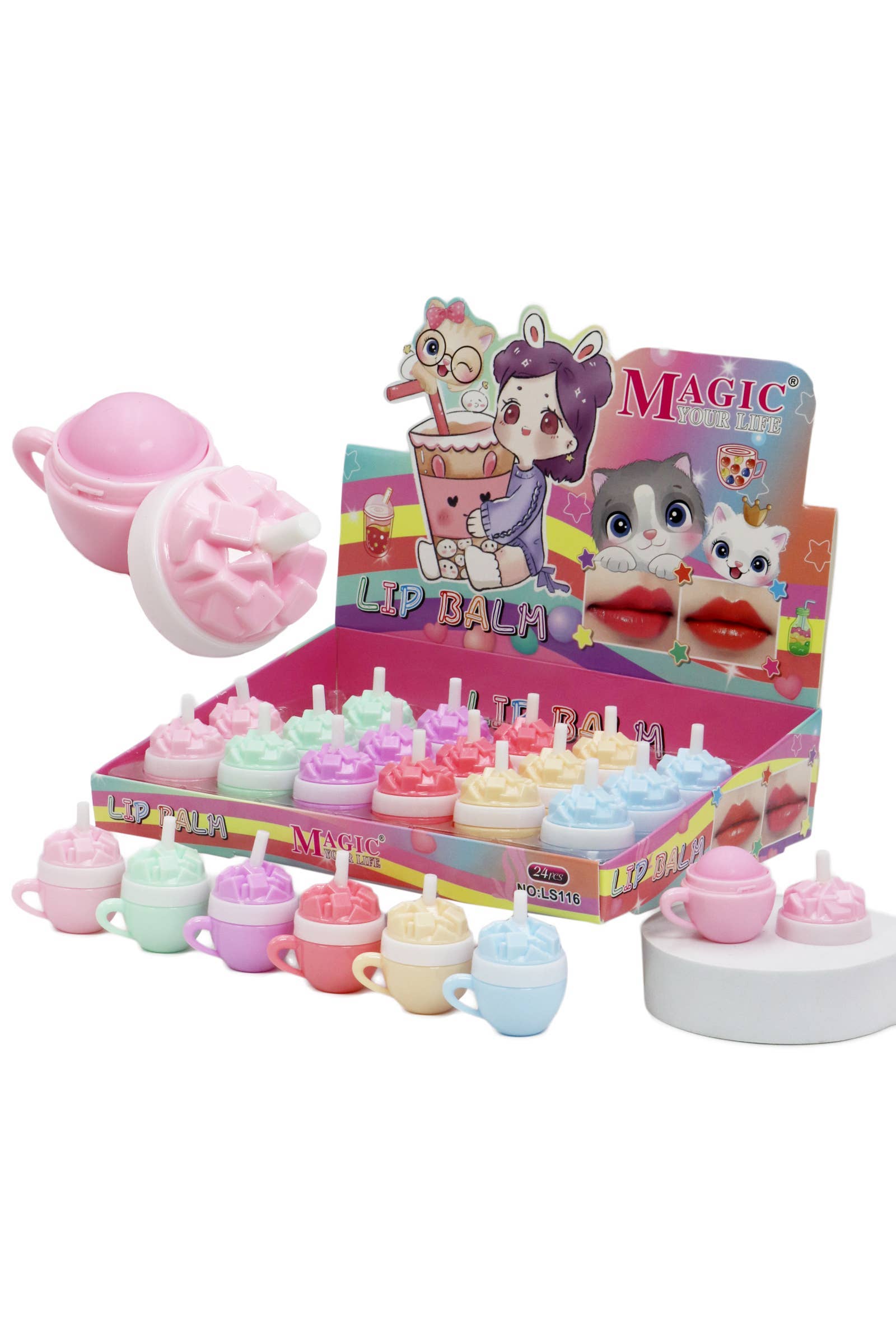 Pineapple Moisturizing Round Soft Touch Lip Balm Collection - 24 pcs -Expires 2028/04/24 (Manufactured 2025/04/26) -Lip Balm Dimensions: 2.35" * 1.5" * 1.5" -Display Box Dimensions: 10.75" * 7.25" * 2.25" -Package Details: Sealed as a whole pack NOT Individually packaged nor sealed. -Assorted Color (24 - 4 Units Per Color, May Vary) -CA Prop 65 Advisory -Ingredients: Mineral Oil, 2-Ethylhexyl Palmitate, Paraffin/Synthetic Wax, Ceresin, Hydrogenated Polyisobutene, Petrolatum, Beeswax, Propylparaben. -CAUTION: Discontinue use if signs of irritation or rash occurs, if swollen consult a physician immediately, keep in a cool and dry place. For external use only and keep out of reach of children. -Package Details: Sealed as a whole pack in clear shrink wrap NOT Individually packaged nor sealed.