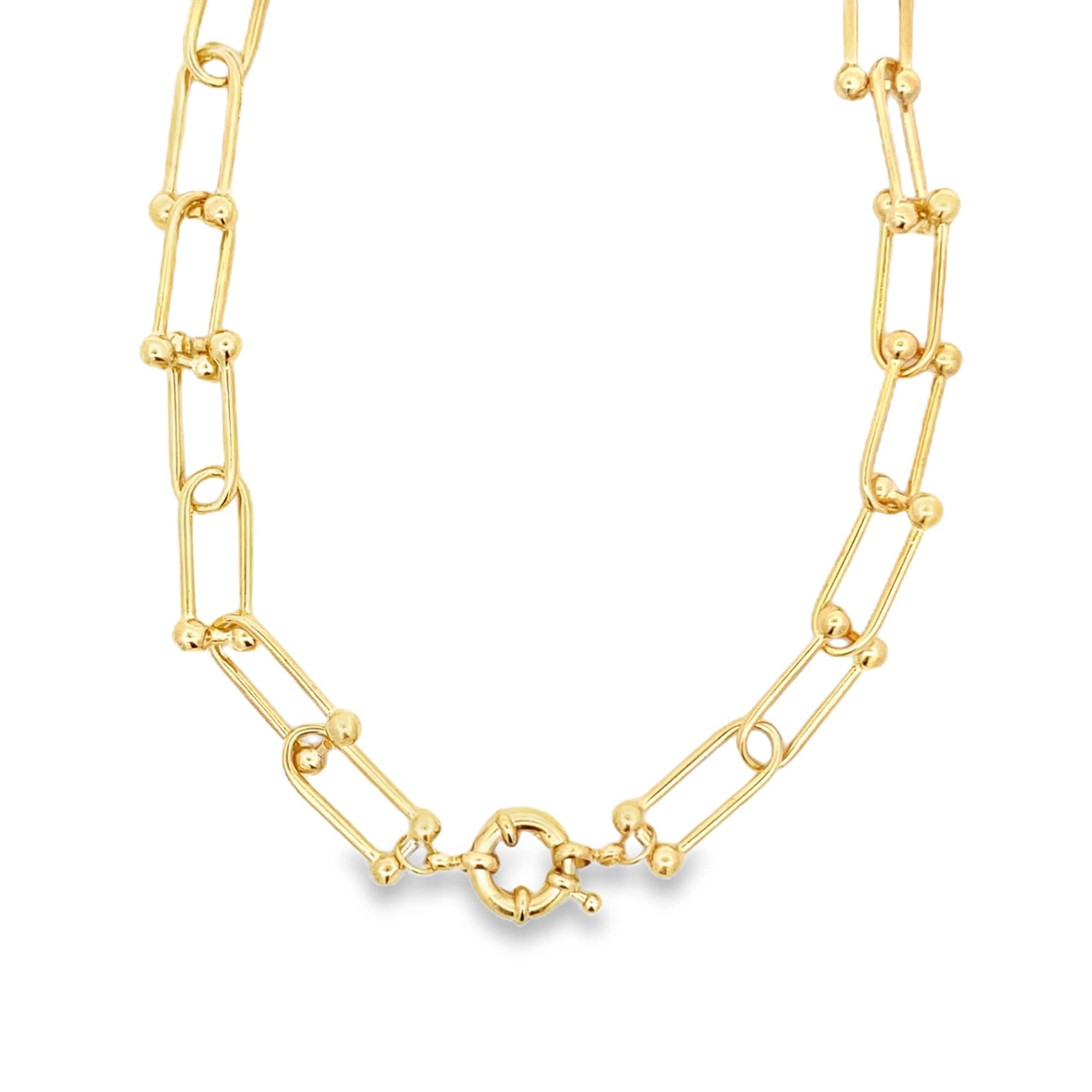 Round Pearl Necklace (F244) Description: * Material: 18K Gold Filled * Quantity: 1 Necklace 1 Clasp (Bulk Orders Accepted) (Extenders May Vary) * Length: 16' Inch (+2'Inch Extender) = 18' Inch * Pearl Thickness: 8mm * Chain Color: Gold