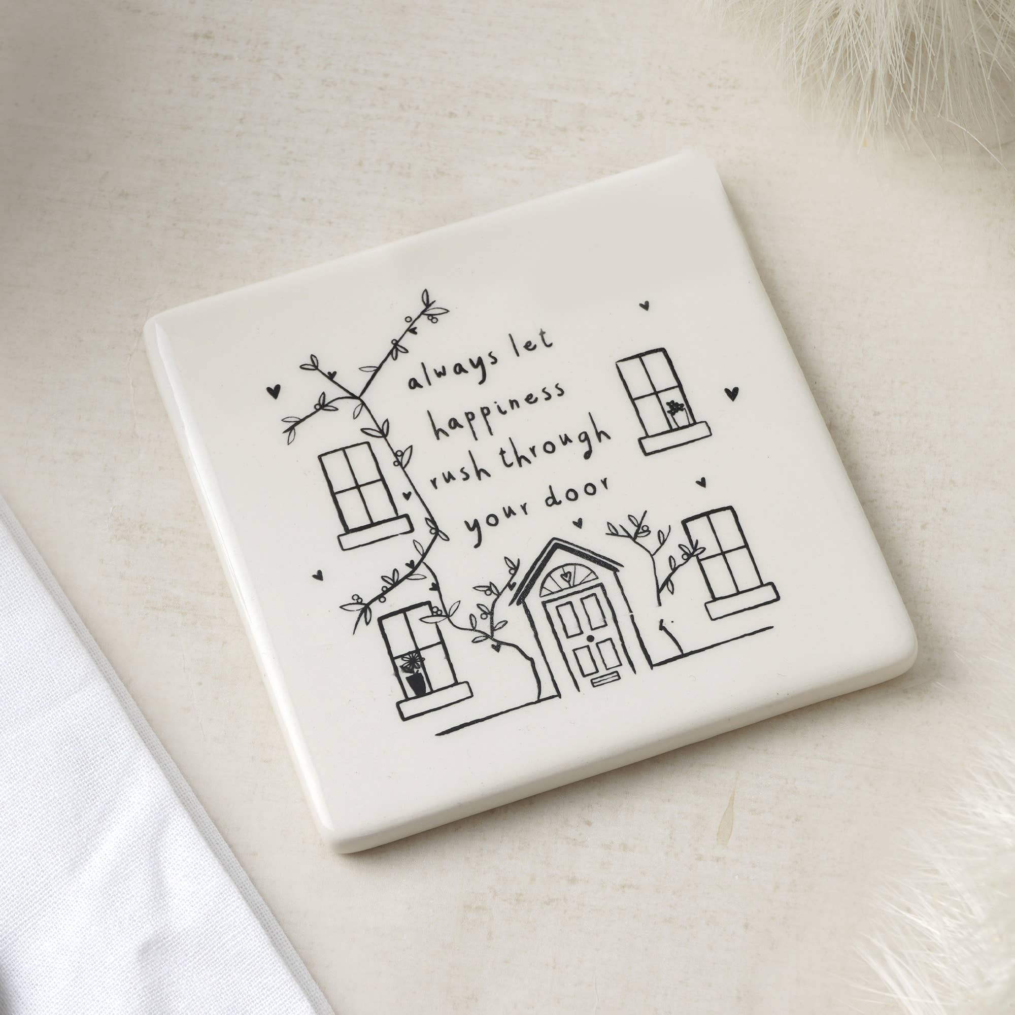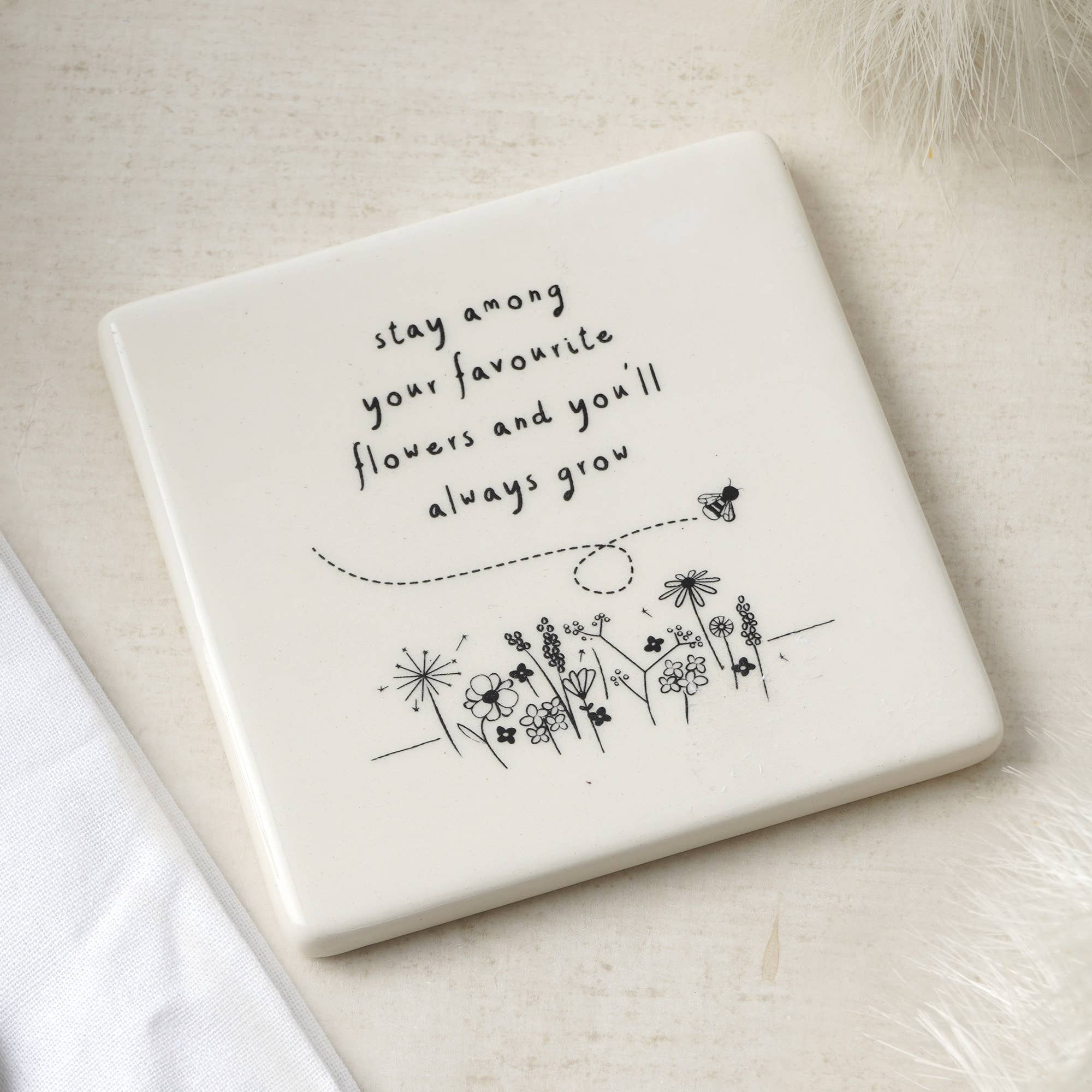 A Thoughtful Gift | This lovely individual ceramic coaster features a lovely stargazing hare illustration with its own individual slogan. The perfect gift to friends and family. The quote reads: 'The Stars Are Shining Just For You’ Protect Your Worktops and Furniture | Each coaster comes with 4 protective pads on the bottom to ensure your worktops and pieces of furniture are protected. Their size makes them the perfect choice for placing your cup of tea, coffee, juice or wine glass on top off. Durable and Easy Cleaning | Made from Ceramic they look great but they’re quality means any drips or marks are easy to wipe clean! Dimensions | Height: 10cm x Width: 10cm x Depth: 1cm Designed in Cornwall | From the Range Send with Love by CGB Giftware | Item No: GB06541
