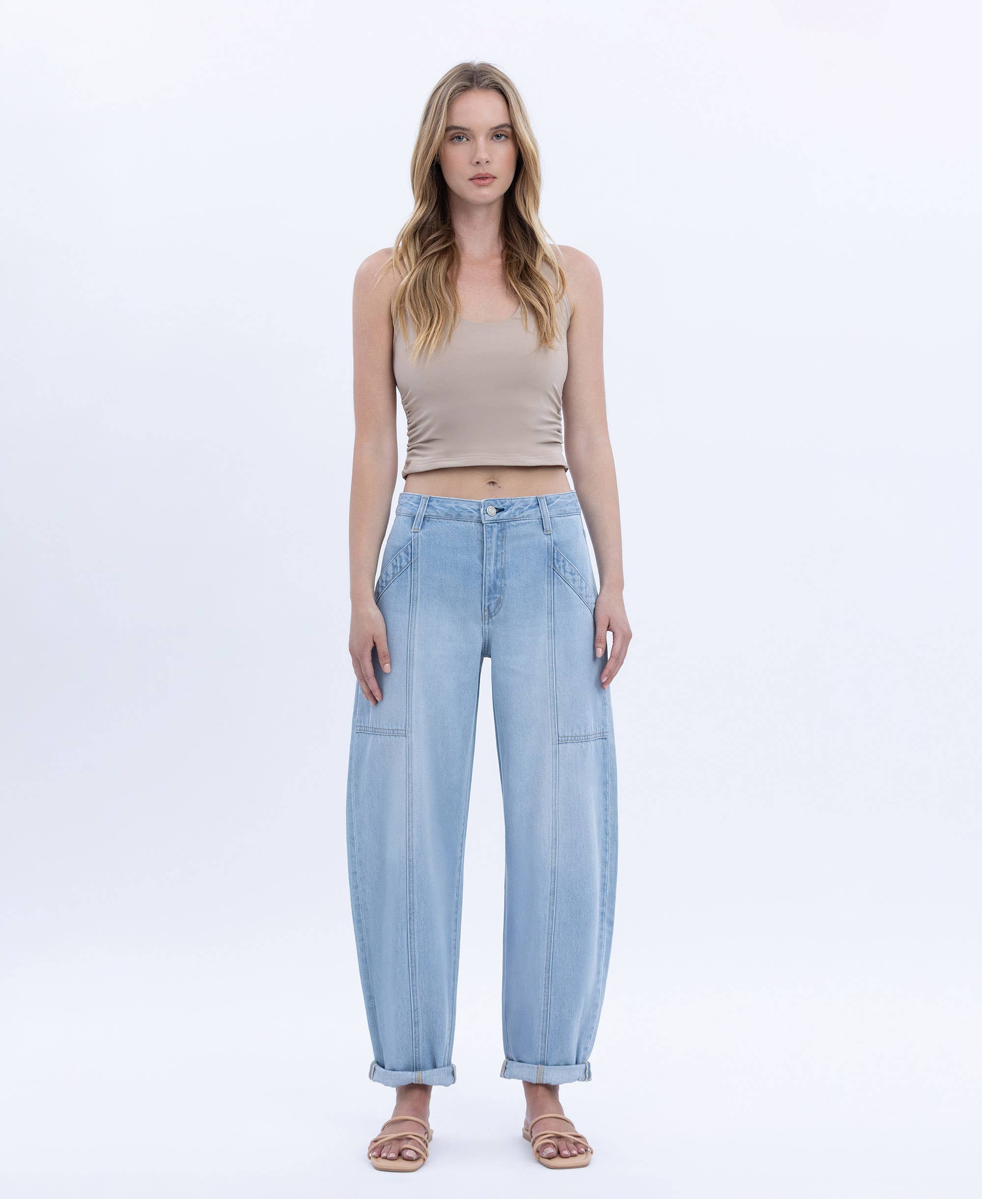 HIGH RISE RAW HEM WIDE A LINE JEANS T6596