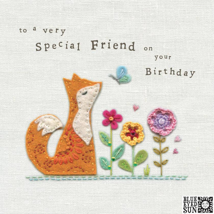 This greeting card design is based on hand embroidered original artwork by market leading textile artist Jo Corner and is embossed and hand finished with jewels in the UK. Sold in sixes, all cards are barcoded and wrapped in a compostable cello with an envelope. They are 160mm square and blank inside. *Blue Eyed Sun logo is for image copyright purposes only & does not appear on the card.