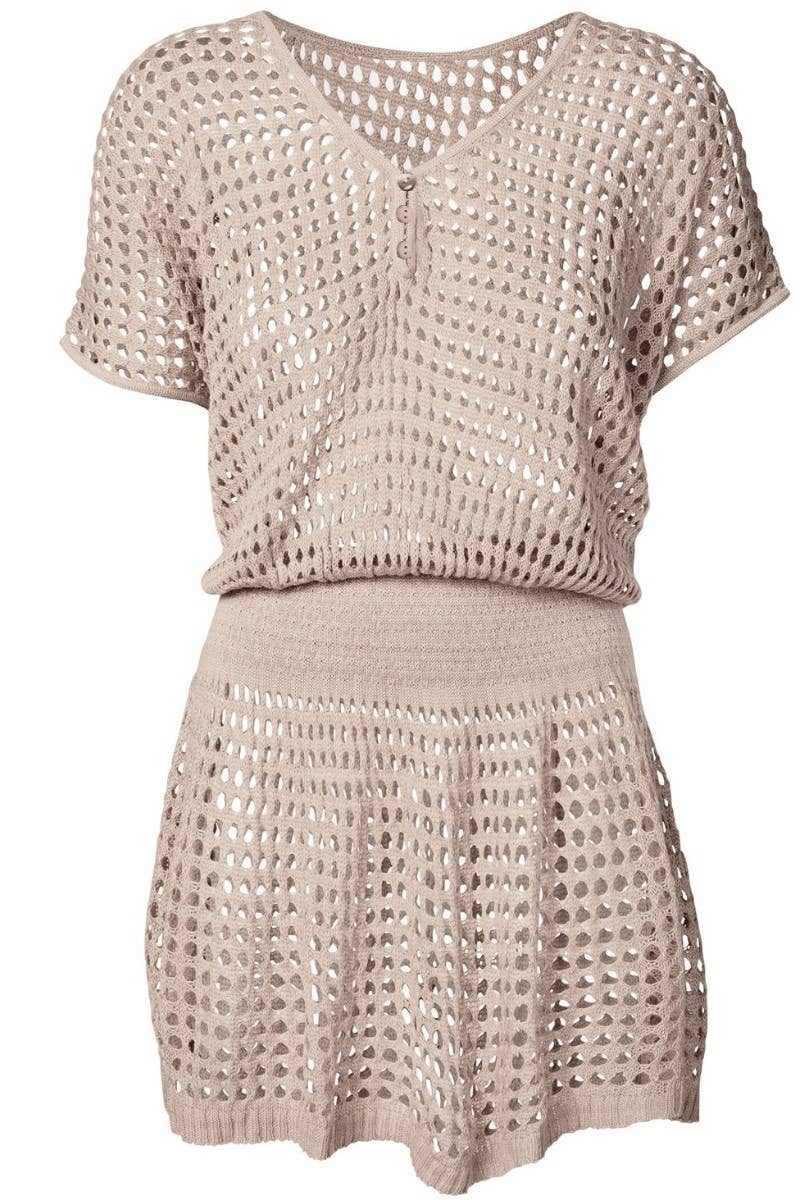 beach cover up dress Side slit Sleeveless Open knit