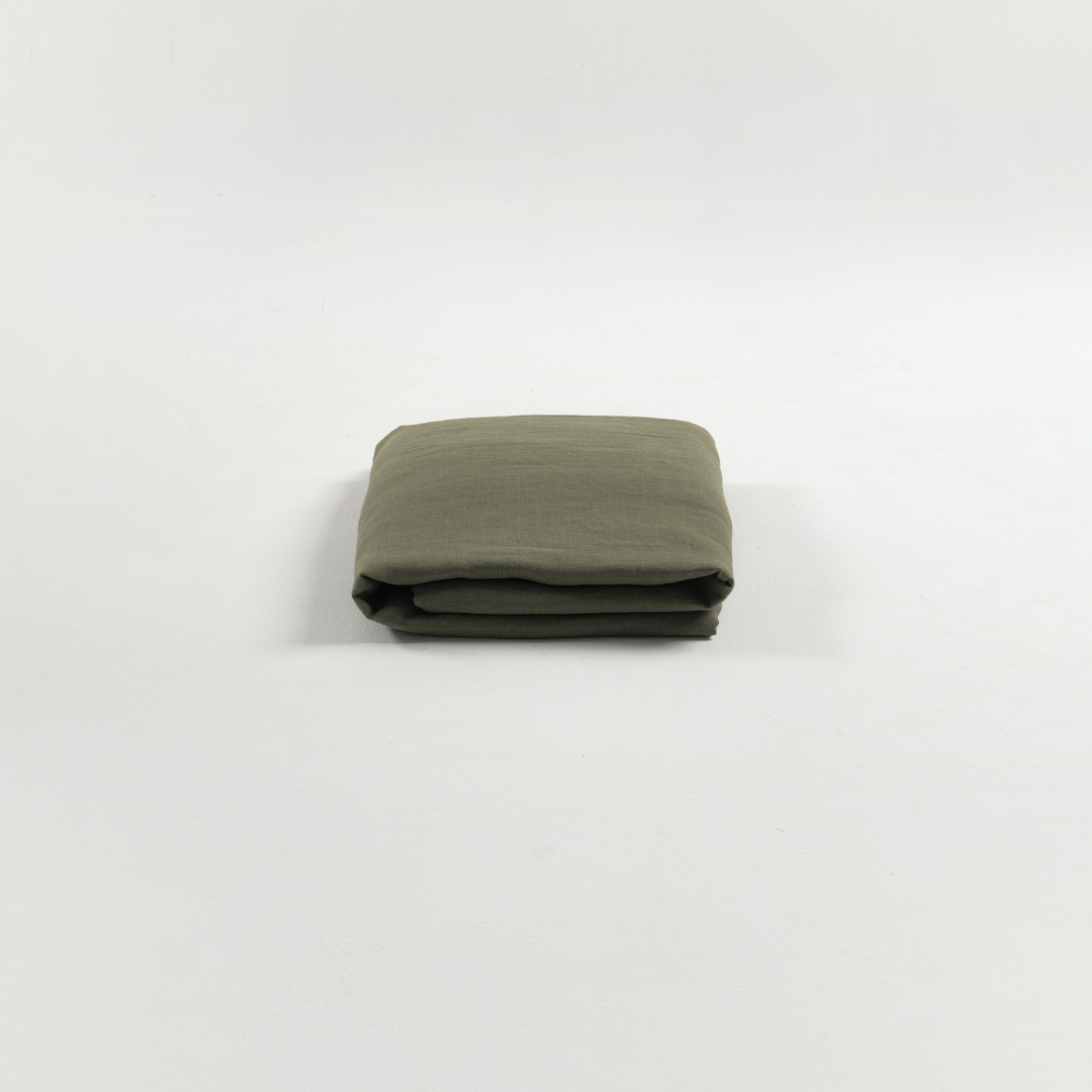 Forest green linen flat sheet