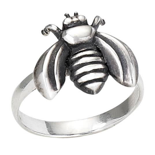 Oxidized sterling silver wrapping branch with bird perched. Band is approximately 1/16" and bird is approximately 1/4"