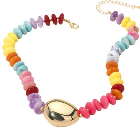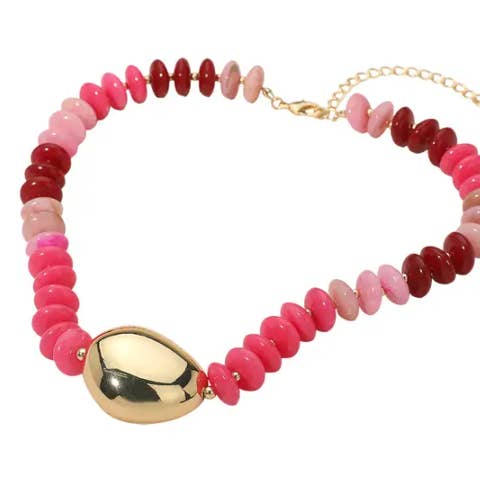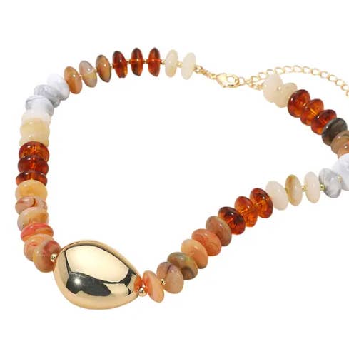 Wholesale Mother of Pearl Heart Pendant Marbled Resin Oval Beaded Necklace