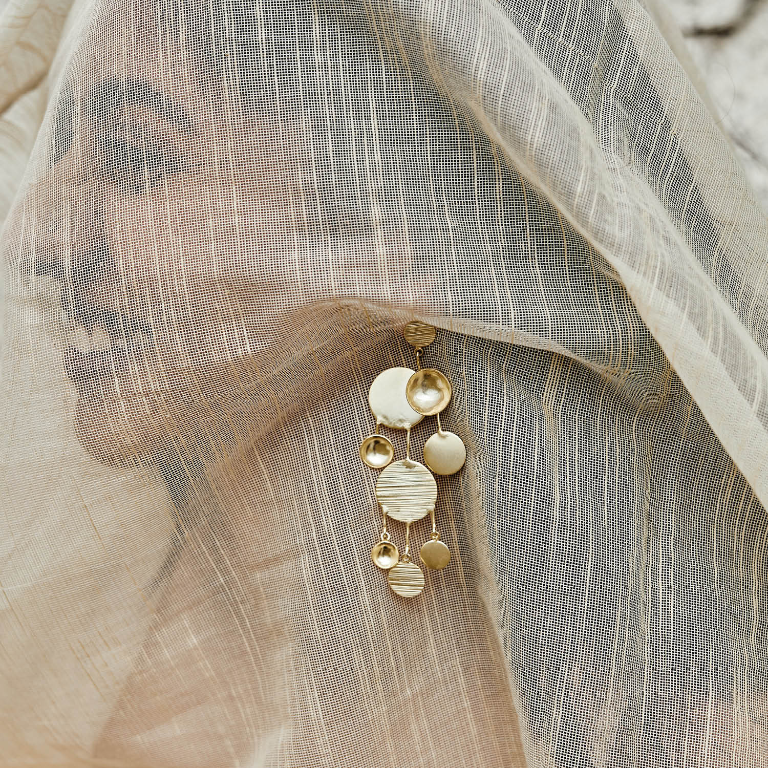 Handcrafted in 22k gold-plated brass, the Safa Hoops capture the rhythm and geometry of tilework and traditional artisan jewellery. Their diamond-shaped filigree pattern echoes the layered textures and structural motifs central to the Souk collection. Lightweight and striking, these geometric gold hoops can be worn alone as a statement or layered with other gold earrings for a multidimensional look. Perfect for those who appreciate form, pattern, and the interplay of structure and texture.