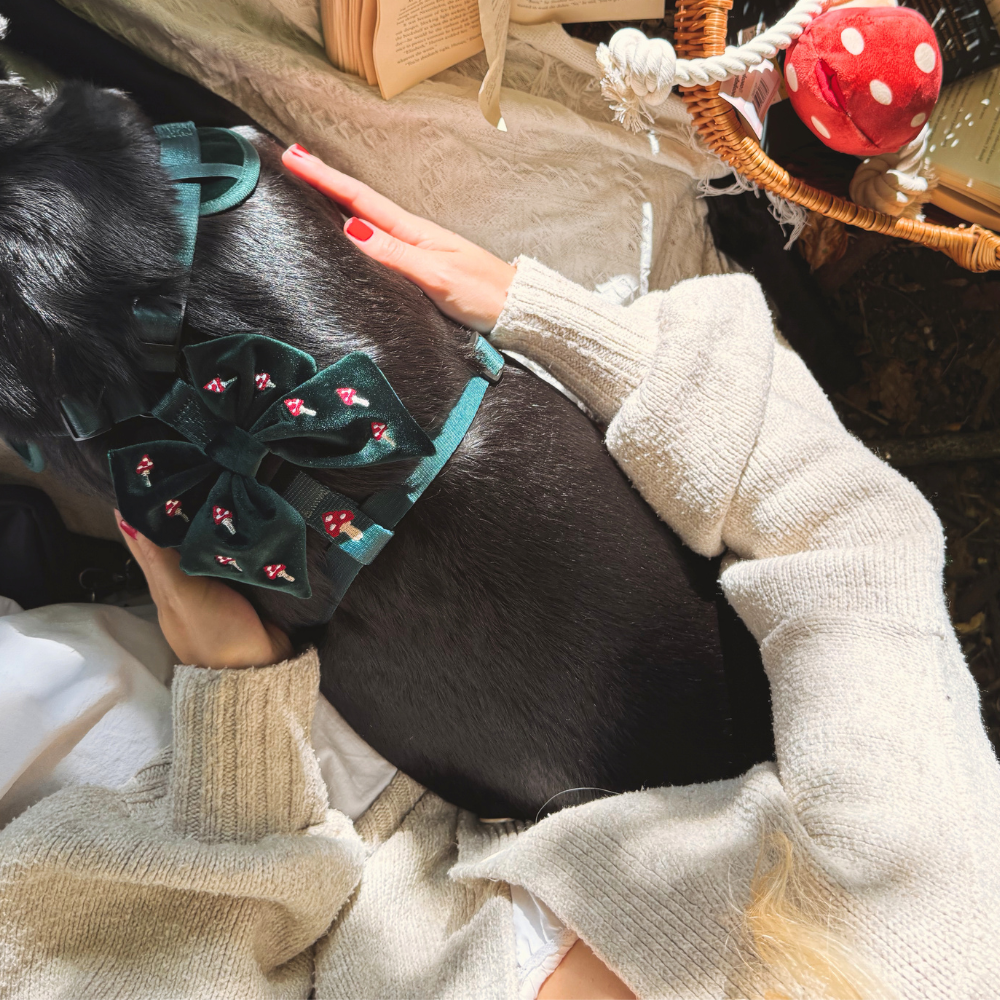 The red Poppy Collar Flower adds a touch of charm to any outfit, while also serving as a symbol of respect for Remembrance Sunday. This corsage is perfect for dog walks or any occasion where you want to pay your respects. Dimension: 9cm Material: Velvet with velcro fastening (to wrap around any collar or harness) £1 from every order is donated to the Royal British Legion Corsage / corsages / bow tie
