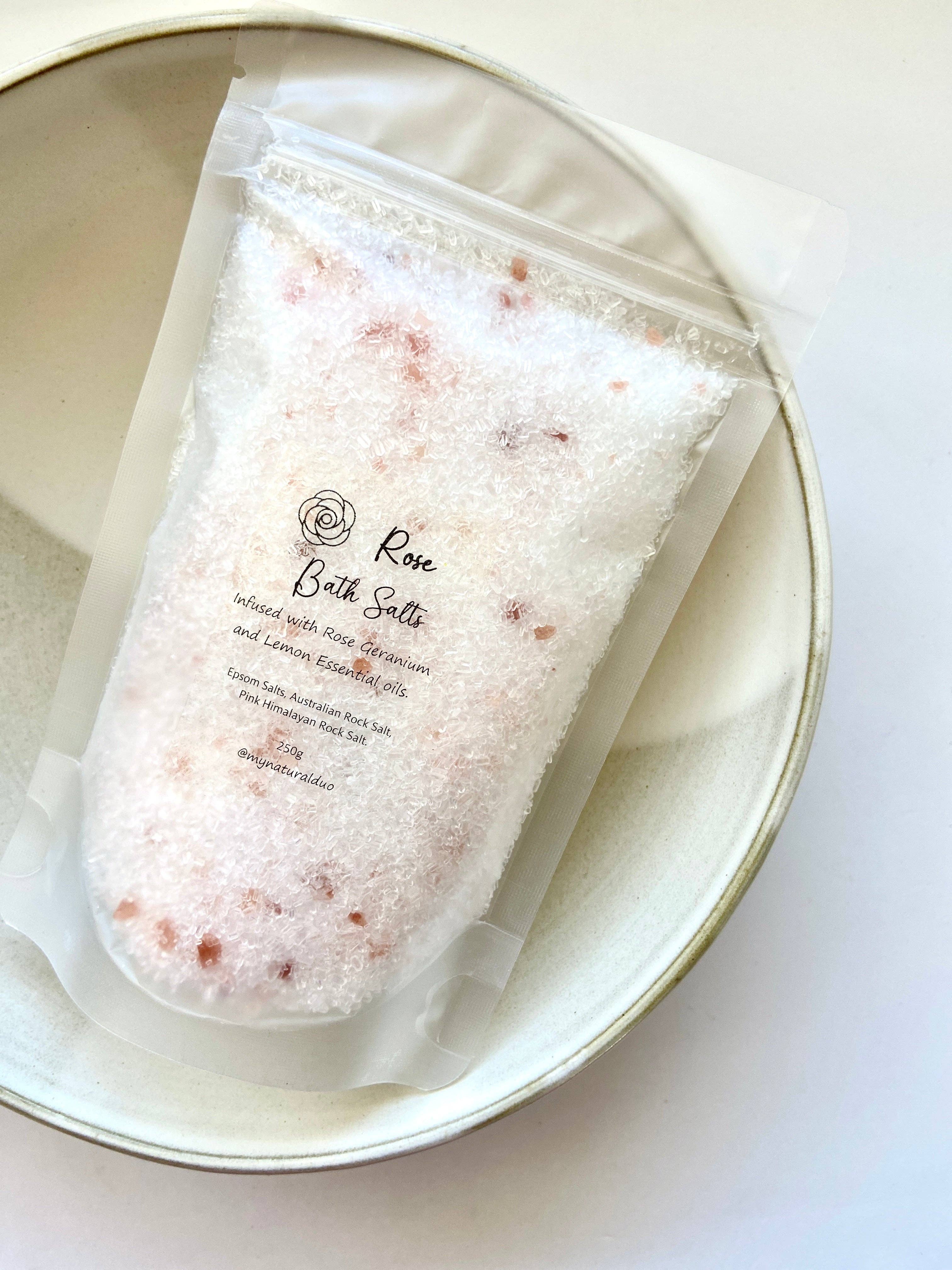 Made in Australia Ingredients: Natural Epsom Salts, Evaporated Australian Salt Crystals, Pink Himalayan Rock Sea Salt, Pure Essential oils, Organic Dried Botanicals. â–¸RELAX- Lavender essential oil, Lavender & Chamomile flowers. â–¸DETOX- Lemon essential oil, Rose & Calendula petals. â–¸ENERGISE- Peppermint essential oil, Blue Mallow flowers. Weight: 50 g (1.76 oz)