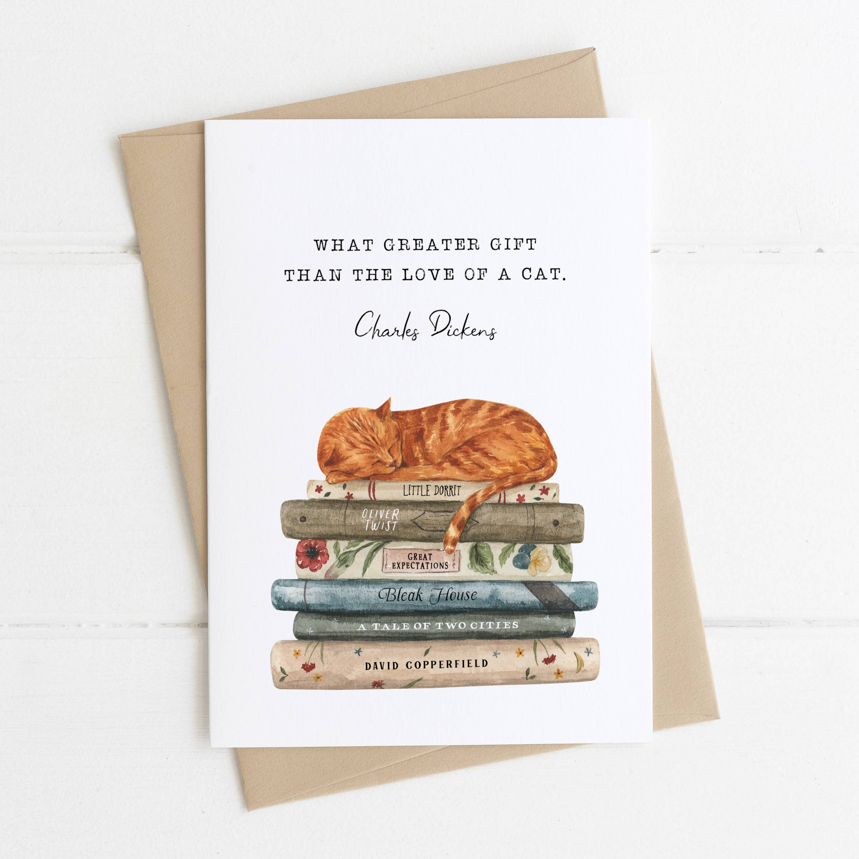 Share the literary love with this William Shakespeare book stack card. The watercolour style stack features the following popular Shakespeare books: The Tempest, Macbeth, Hamlet, Othello, The Taming of the Shrew, A Midsummer Night's Dream, King Lear, Much Ado About Nothing, Twelfth Night and Romeo and Juliet. The card comes with a kraft brown envelope and the inside is left blank. Material: Our greetings cards are totally eco-friendly. These are printed on thick 270gsm premium recycled card, which has a finely textured matte surface. Envelopes are 100% recycled, vegan friendly kraft brown with a triangle flap. Please note that recycled materials are not uniform and therefore the colour and texture can vary slightly from product to product. We think this makes our items even more unique. Our greetings cards come packed in plant based compostable and biodegradable clear bags. Dimensions: Portrait A6 (148mm x 105mm)