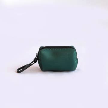 Dog bag holder made of Lignify® vegan leather, handmade in Europe with interior padding. Capacity for one roll of bags with a dispenser at the bottom and top access lid with button. Avoid products made from animal leather with this alternative made from vegan leather based on Lignin, a byproduct of the paper industry that generates 100,000,000 tons of waste per year.