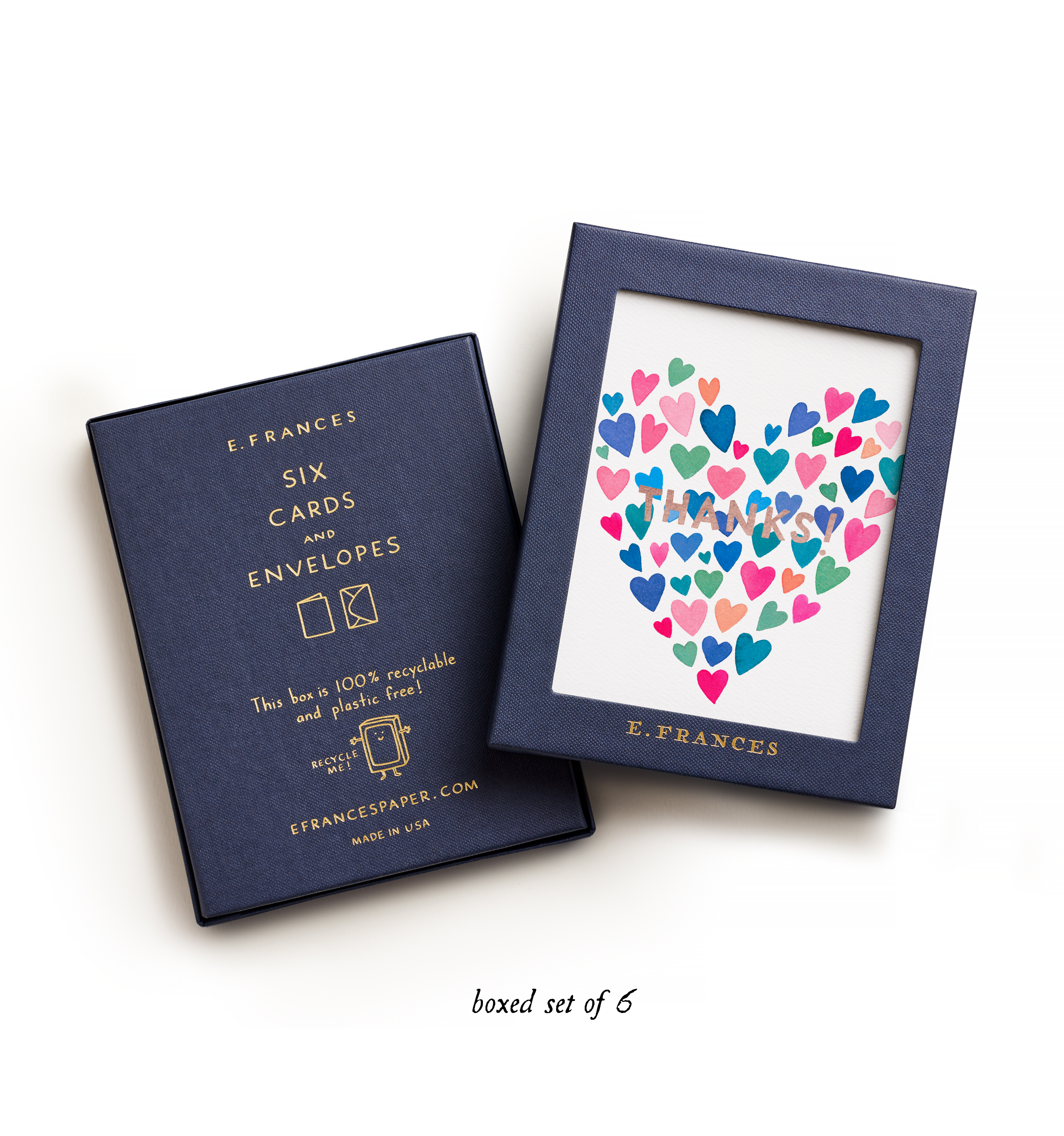 At E. Frances, we believe connection makes the world better. And happier! Our original artwork paired with just-right words warms the heart and helps make meaningful connections easier. Every card begins with a lovingly painted watercolor, and is then printed on luxurious heavyweight paper with brilliant color and, when featured, metallic foil accents. And because we think tiny details can make a big impact, you’ll always find a second illustration on the back of every card!