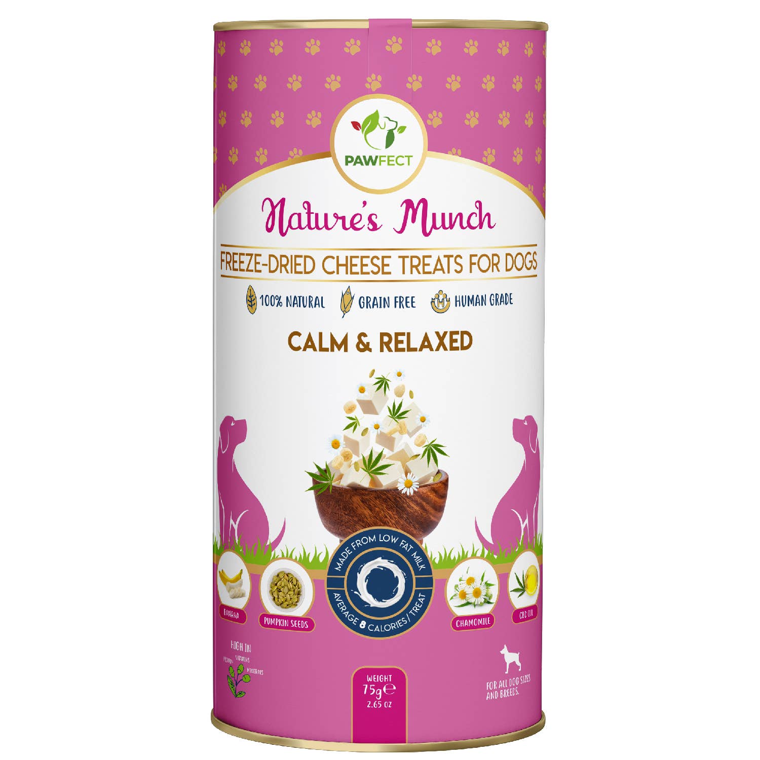 Pawfect Nature's Munch Freeze-Dried cheese Calming treats for Dogs| Calm & Relaxed | 100% Natural| High Protein, Low Fat| 8 Calories per Treat| Grain-Free| Healthy Training Treat (75g/2.65oz)