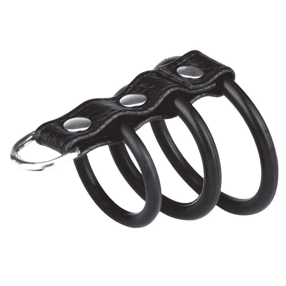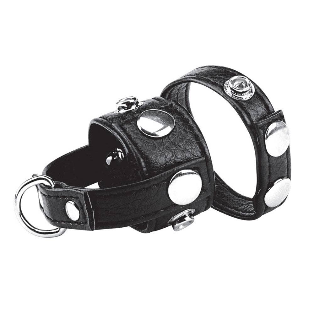Stuff your chicken and giblets into our 1.5" Cock Ring with Ball Strap from Blue Line Men. With multiple points of constraint and pressure for both the penis and testicles, your balls will feel like they're constantly ready to burst. This shaft supporter holds everything in place and leaves your member throbbing for release. Wrap the stretcher around the scrotum above the testicles and snap closed. The stretcher will keep the testicles from contracting during orgasm. Do not wear for more than 30 minutes. * Faux Leather (Vegan-friendly) * Snap enclosures * Snug fit * Perfect for BDSM and CBT play * Intensifies ejaculation DESCRIPTION When wrapped around the scrotum, this ball stretcher tugs at the testicles downward.