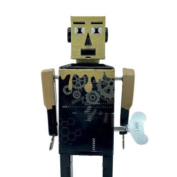 This tap is equipped with a wind-up mechanism and a fixed key. If you wind it up, it bounces and bobs away. A real vintage piece from old times, which impresses with its bright colors and pretty lithography. Dimensions: approx. 5 x 6.5 x 9 cm, made in China This item is not a toy and is not suitable for children under the age of 14. HS code: 9503004990 Size: 5 x 6.5 x 9 cm