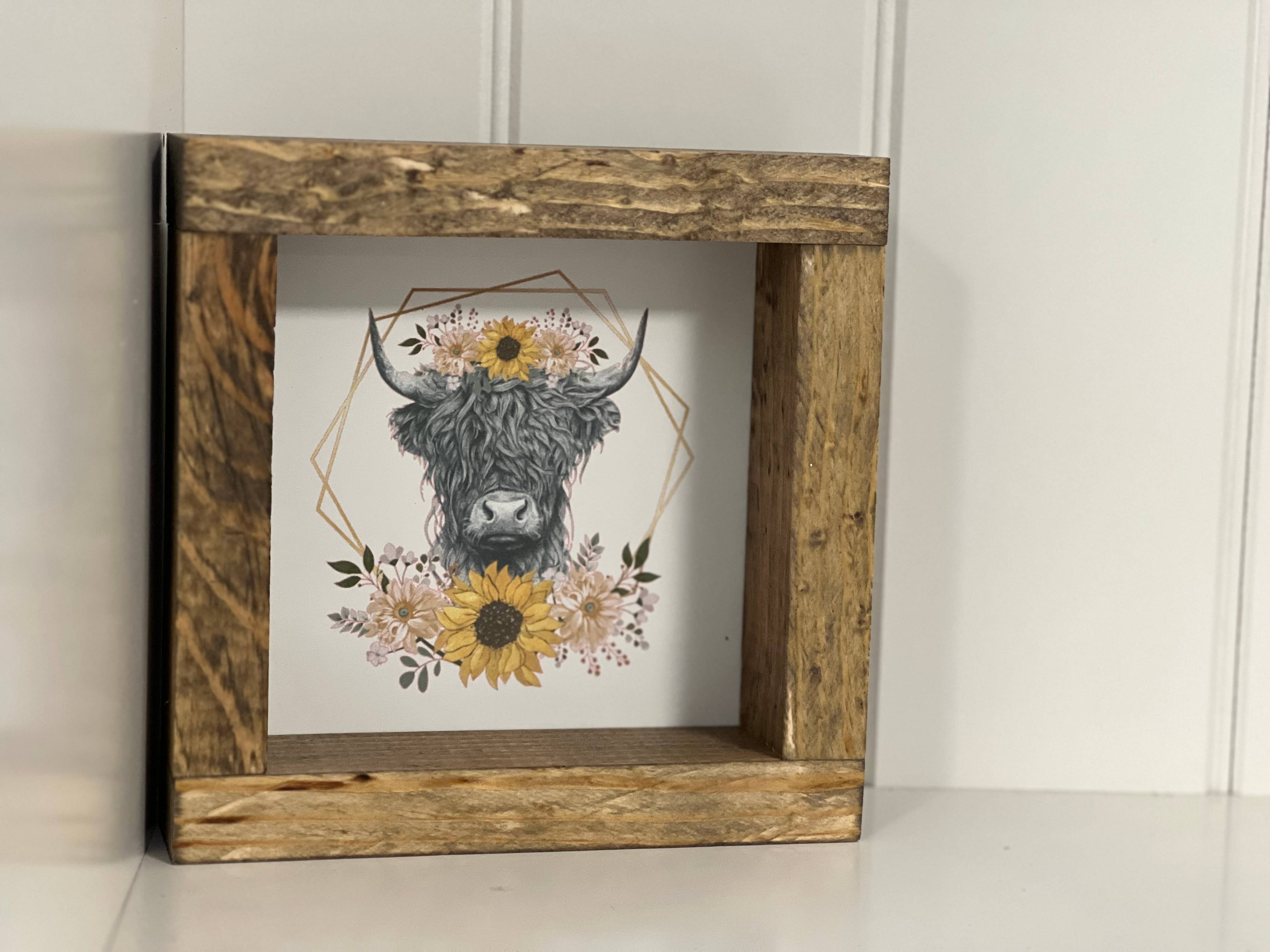The chicken prints were great! I was a little disappointed with the patriotic highland cow prints. I expected the color to be more vibrant as it appears online. Instead, they look a bit washed out. Other than that, I was happy with the quality of the wooden frames.