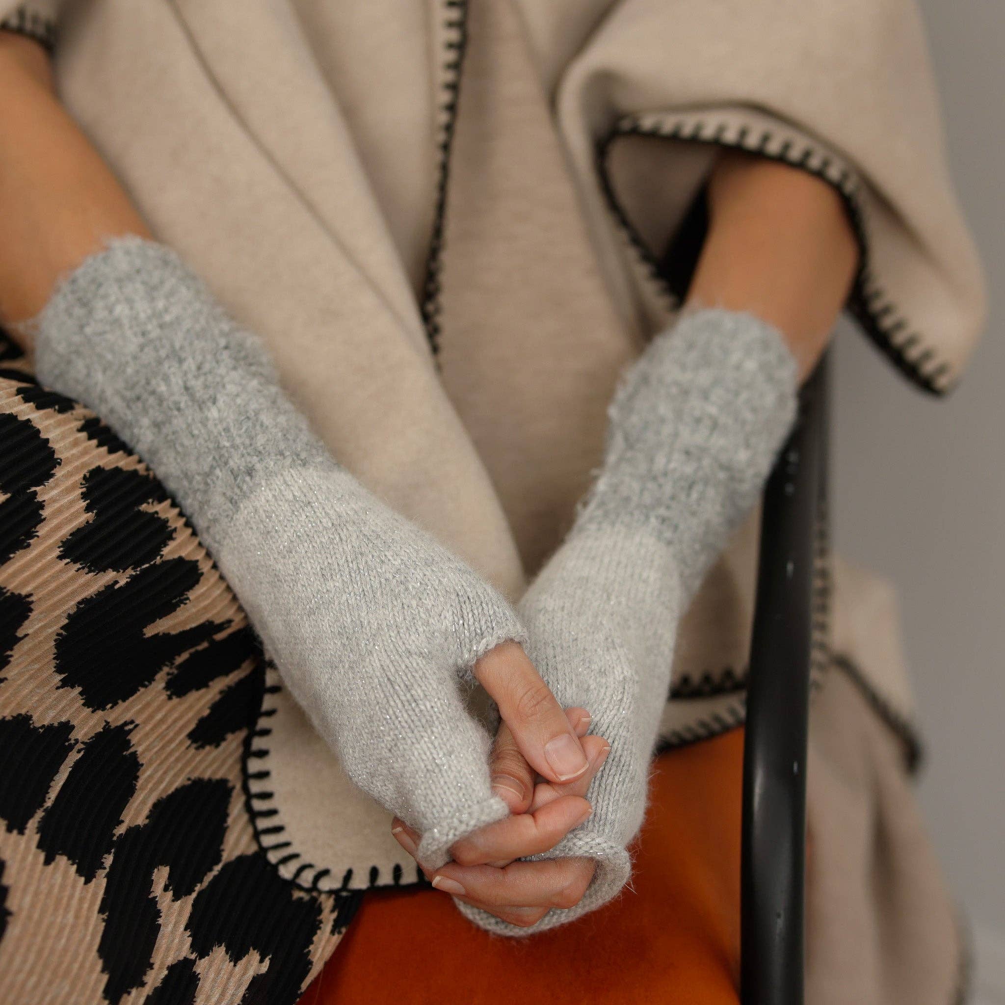 Gray Essential Fingerless Alpaca Gloves
