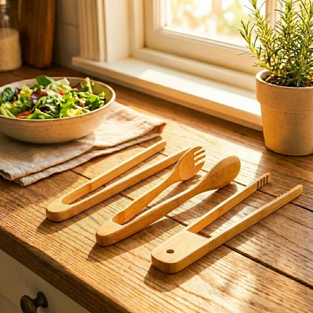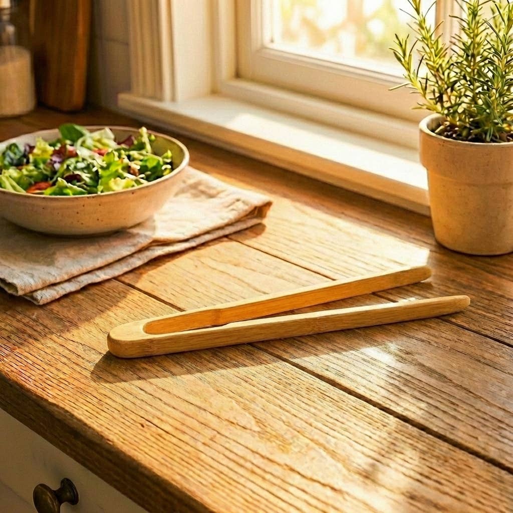 Serve and toss salads effortlessly with these bamboo salad tongs, designed for a comfortable grip and a stylish, natural touch to your dining table. Made from sustainable bamboo, these biodegradable tongs are an eco-friendly alternative to plastic utensils, promoting a greener and more sustainable kitchen. ~~~~ How to Use: Use the tongs to toss, mix, and serve salads or other dishes with ease. ~~~~ Care Instructions: Hand wash with warm soapy water and dry thoroughly. Avoid soaking or placing in the dishwasher to maintain their quality and durability. ~~~~ What’s Included: One Salad Tong ~~~~ Materials: Bamboo ~~~~ Dimensions: Length: 20 inches open or 10.5 inches when bent Width: 2 inches Height: .5 ~~~~ Packaging: This product is package-free, meaning it is sold without individual wrapping or external packaging. ~~~~ Branded: No ~~~~ Able to White Label: Yes
