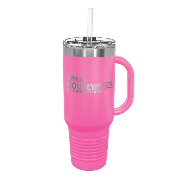 Get ready to join Andy Cohen's hit Bravo franchise with your very own customized Real Housewives wine tumbler! **PLEASE FILL OUT THE CUSTOMIZATION FIELD SO WE KNOW WHAT TO PUT ON YOUR TUMBLER** You can customize our Polar Camel Skinny Tumblers with any City, Town, Street or Group! It's your turn to be the star! 22 oz. Stainless Steel Polar Camel Tumbler feature double-wall, vacuum insulation with a clear lid. They are 2X heat and cold resistant compared to glass or plastic bottles. Polar Camels are made from 18/8 gauge stainless steel (18% chromium/8% nickel) - also know as Type 304 Food Grade. Not recommended for dishwashers, hand wash only. Length 3 3/8" Height 6 7/8"