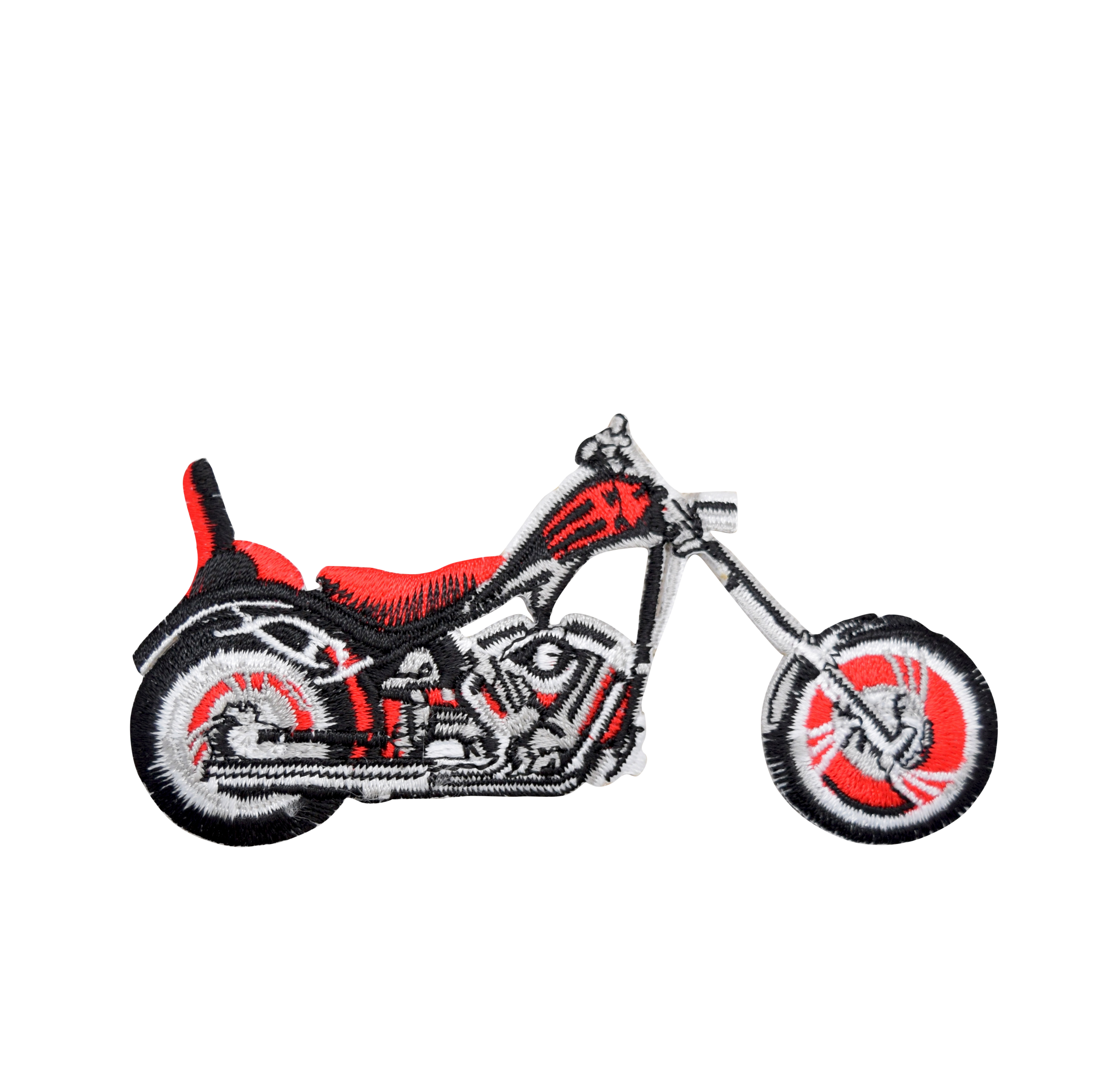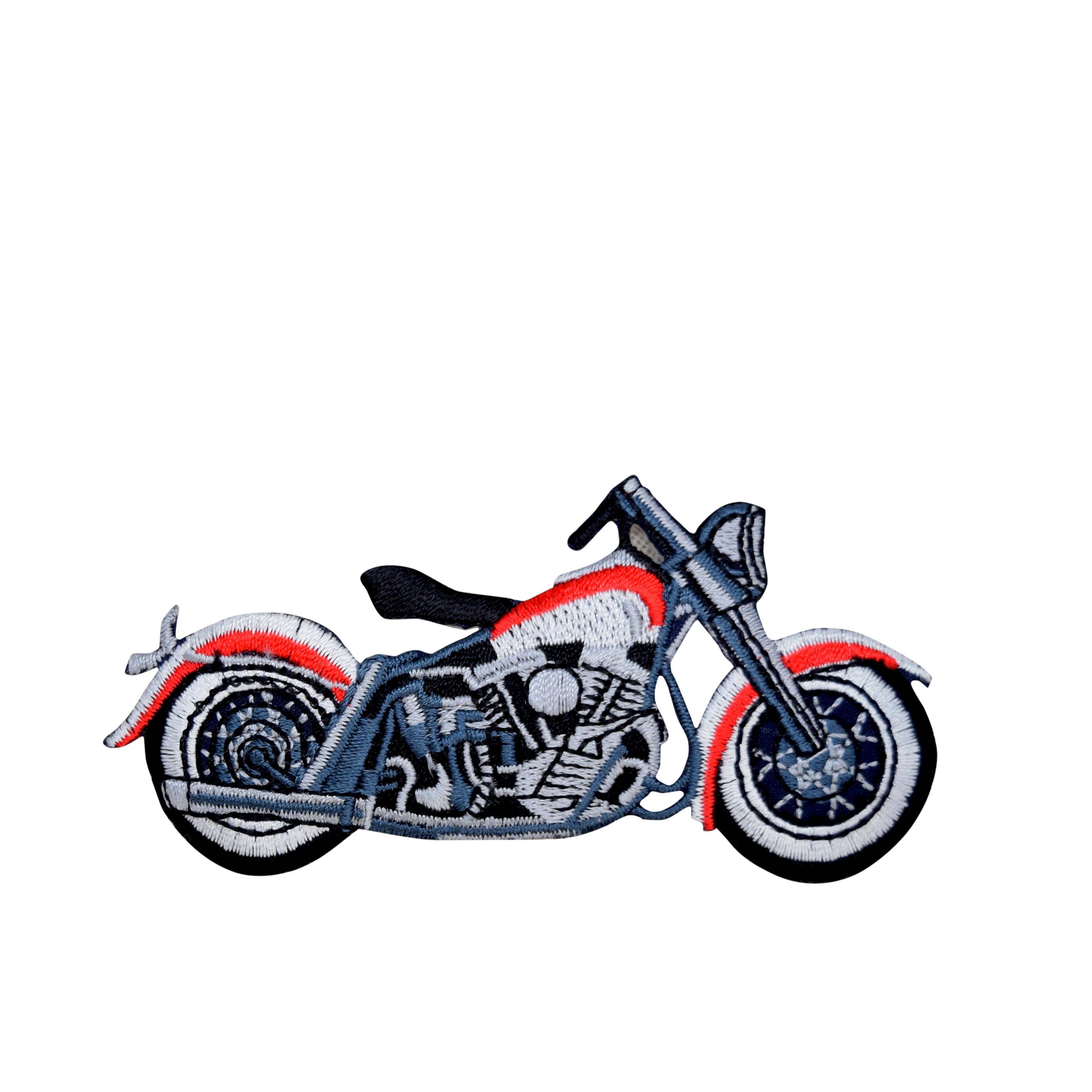 Embroidered motorcycle patch. Can be sewn or ironed on. Great for bags, clothes, hats and more! Measures 4" x 2.25" (10.16cm x 5.715cm)